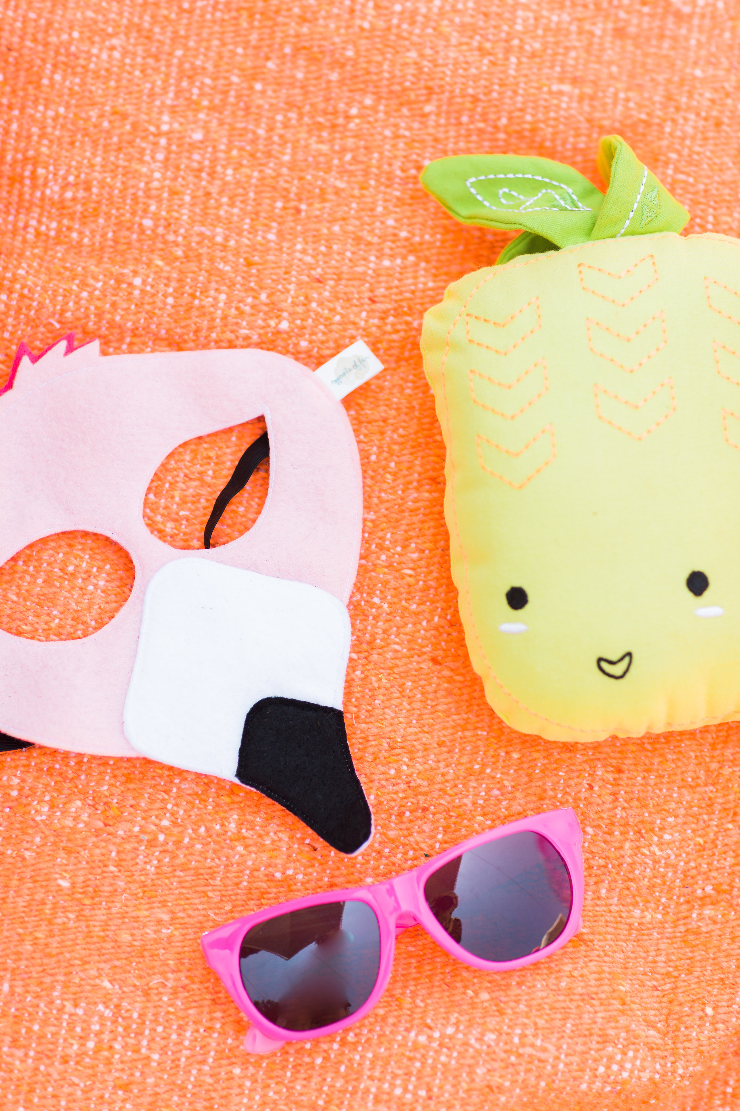 Fun little items were in baskets for the kids to play with, like these cute flamingo masks by Opposite of Far…