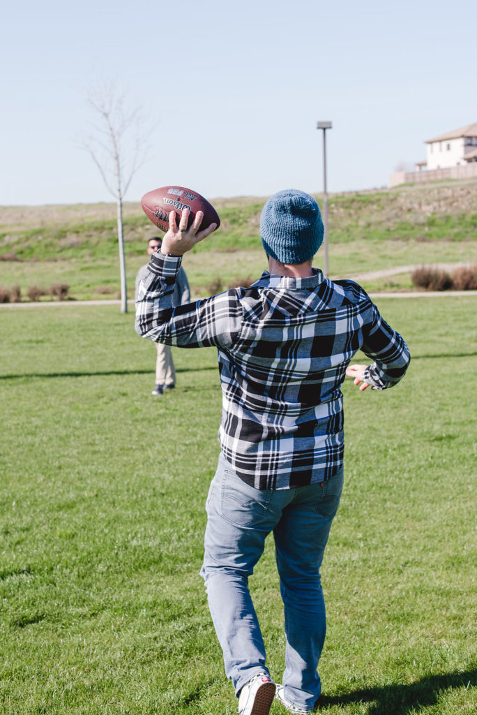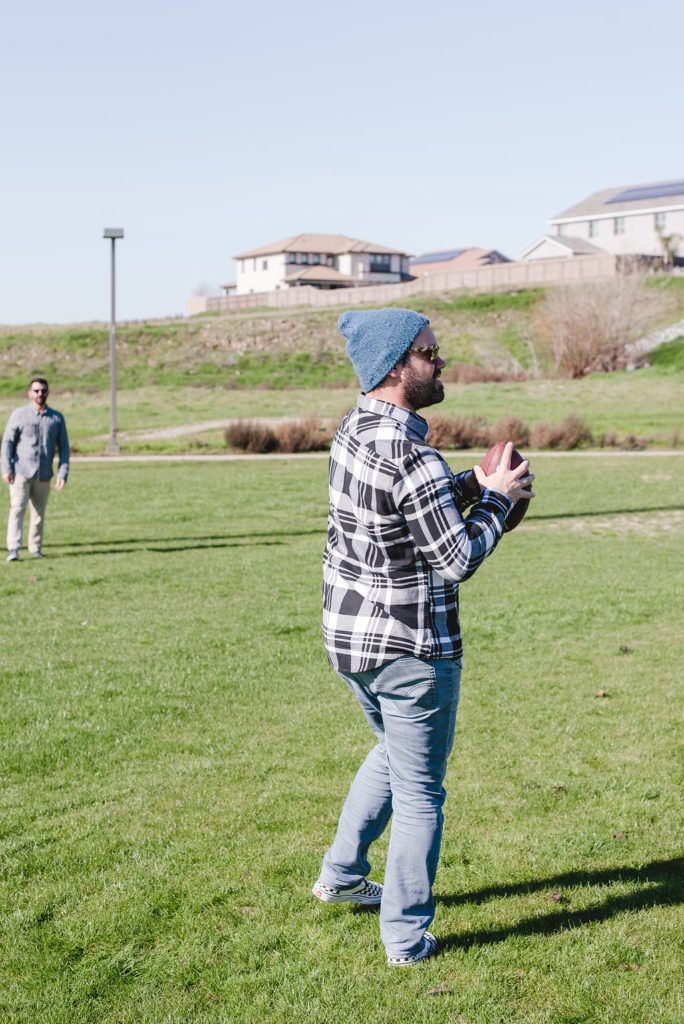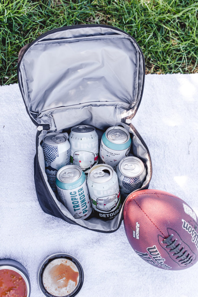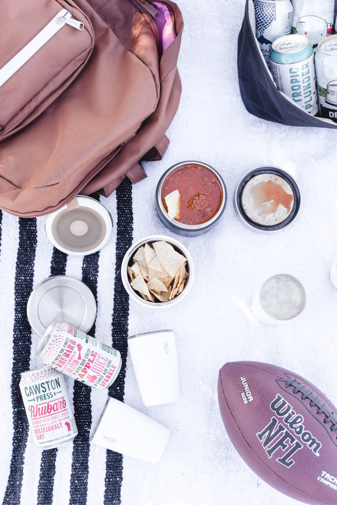 Now, when it comes to men, I think we all know that they don’t need a lot to have a good time. But if I had to pick, I’m pretty sure food + beer would be top 3. So when I packed them up, I included the essentials: a pigskin, my StellĂ© Audio go-go speaker, a couple IPA’s, and some nice hot + spicy chili with some chips to scoop the chili, cause men don’t need utensils apparently.