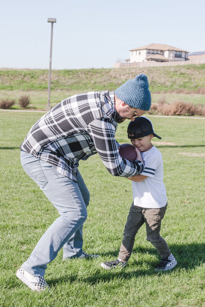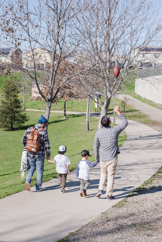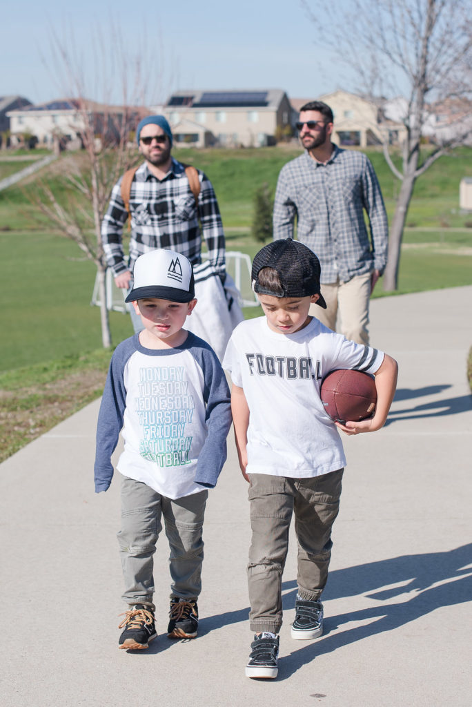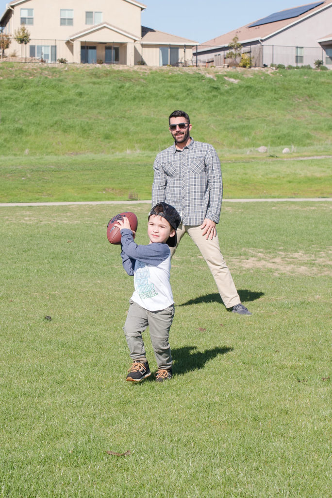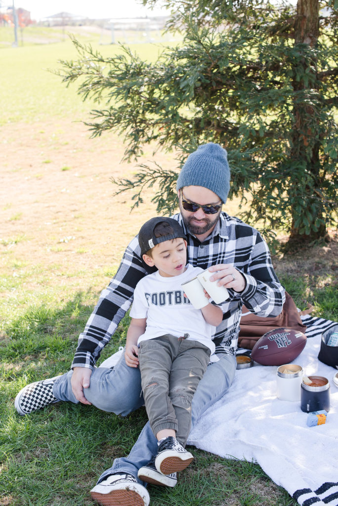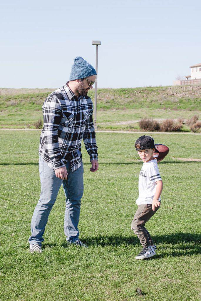 There surely is nothing more American than walking to the park and tossing the old football around with dad. Now, add chili, chips, beer, and your besties, and you have yourself one father/son tradition that any little boy and the big boy (Dad) for that matter would love to do on any given weekend, but especially Super Bowl Sunday.  Plus, it provides us moms some time to get the house ready for having friends over for a little grub, JT,  and commercials, I mean the game. Of course, the game! If you need any last minute ideas for throwing a little get-together, check out yesterday’s feature on throwing a stylish Super Bowl gathering, here