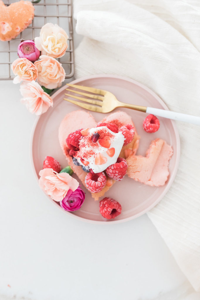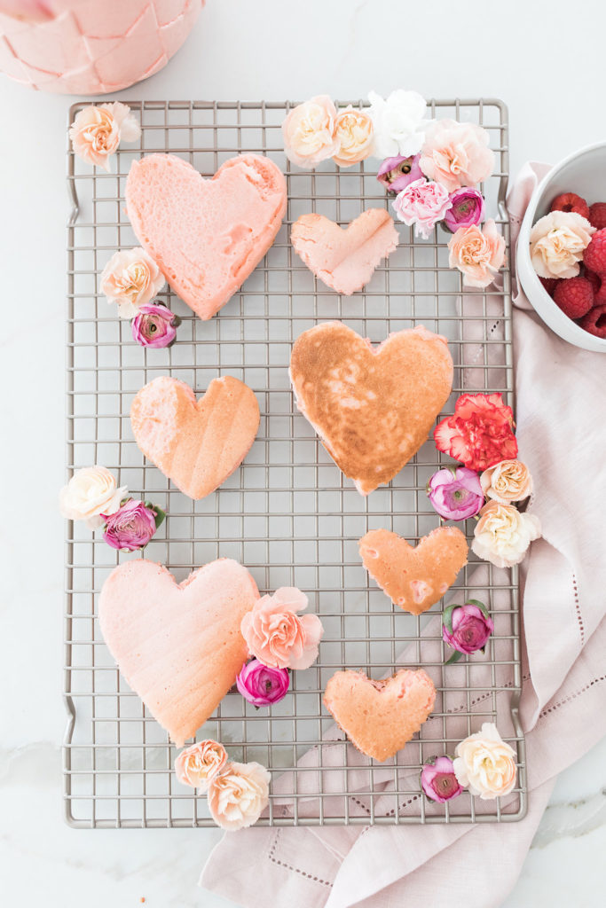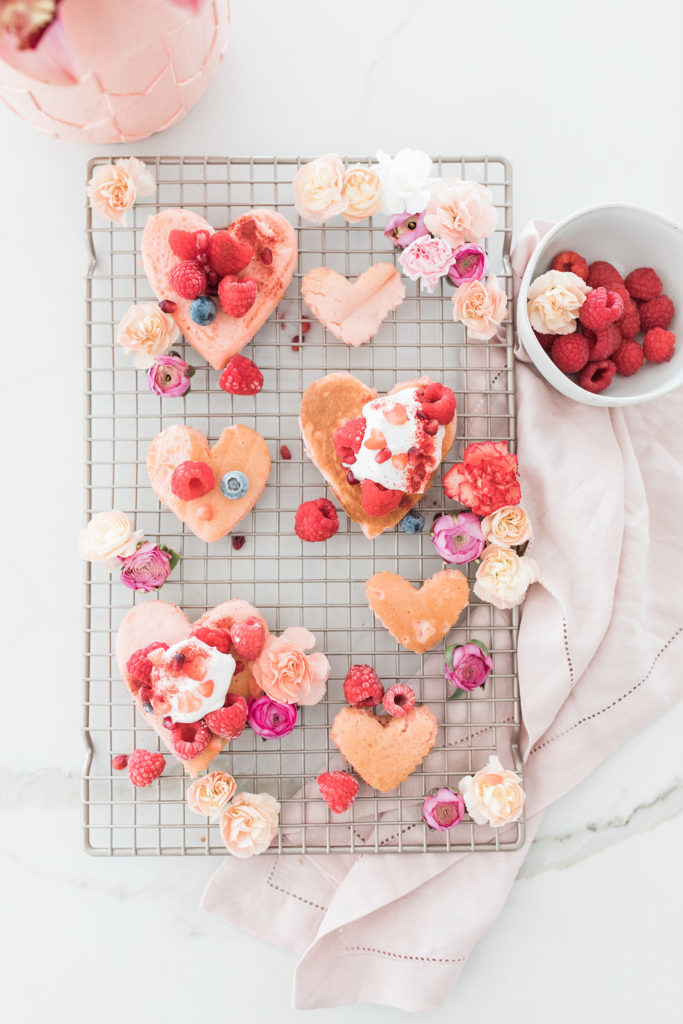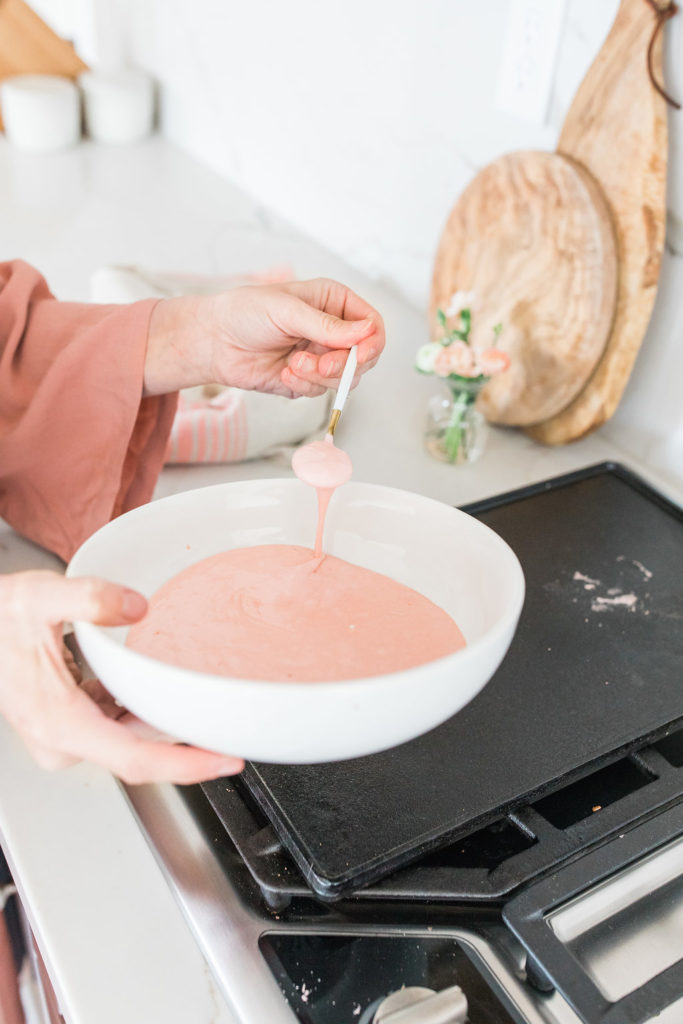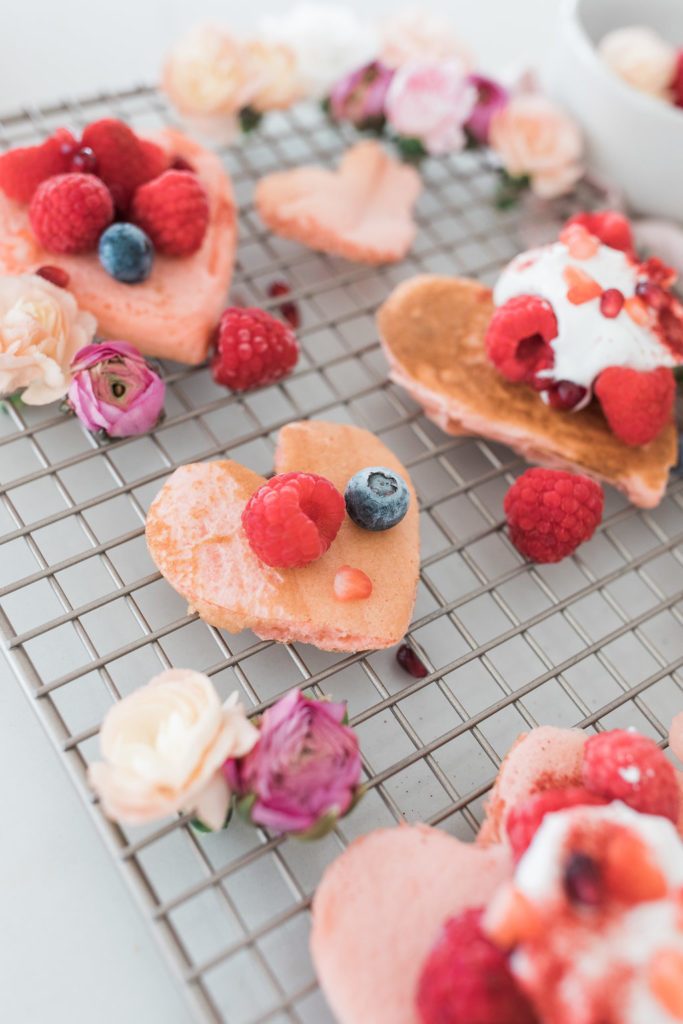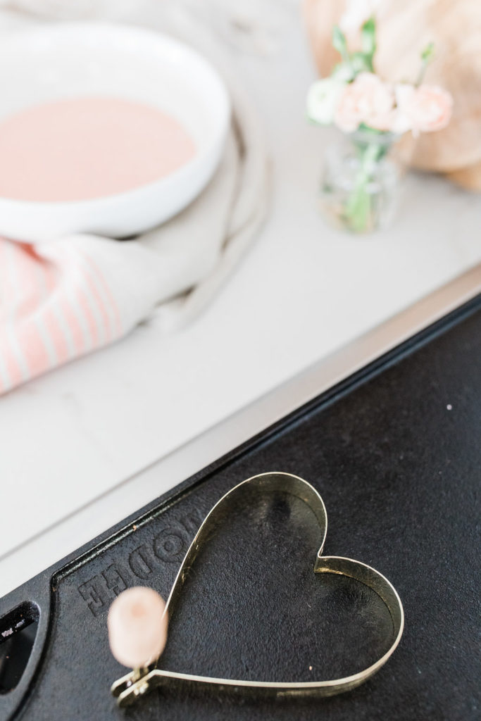 Heat a griddle over medium heat and melt a teaspoon or two of coconut oil or butter. Pour about 1/4 cup of batter onto the griddle for each pancake. Brown on both sides (about 2-3 minutes per side) and set on a cooling rack to cool. Once cooled, take your heart cutter and create mini heart-shaped pancakes.