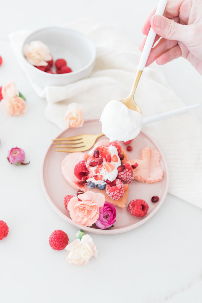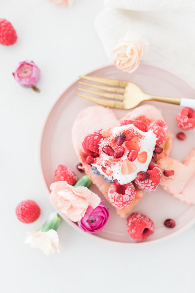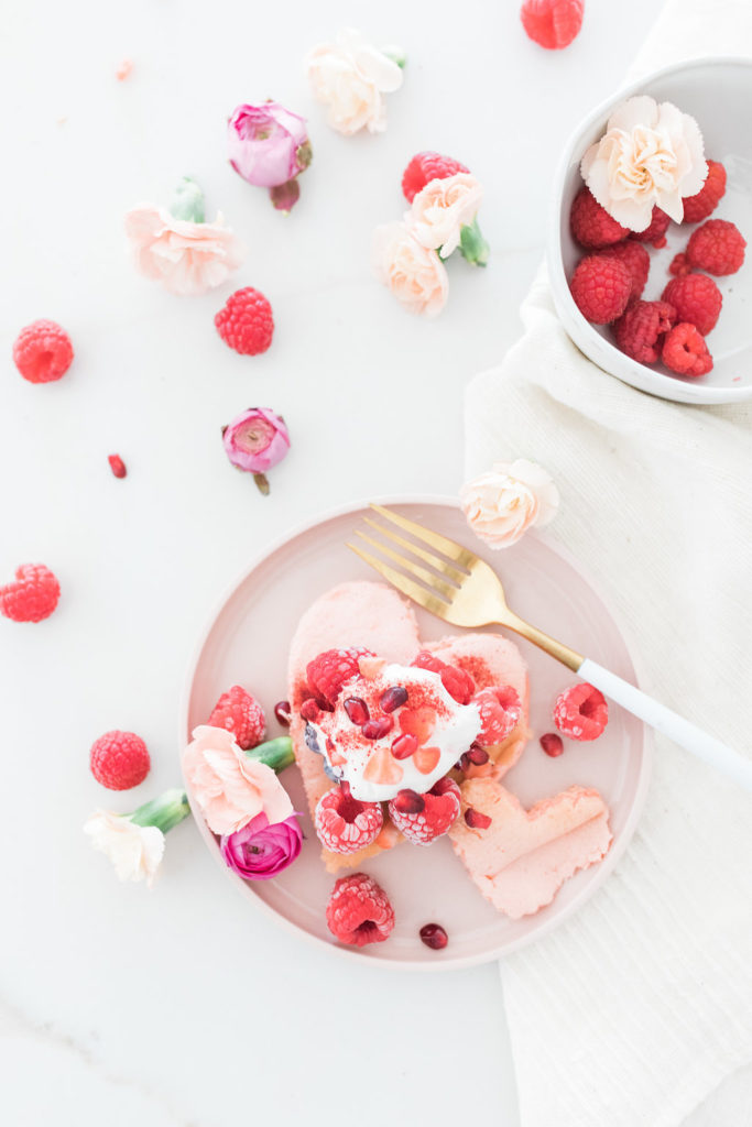 Have you seen that cooking show where they show you some of the most fantastic pancake designs? You know the ones where it’s a cartoon version of someone? No, I can’t do that, but what I can do is make adorable pretty and pink heart mini pancakes! Valentine’s Day month gives me an excuse to serve these little guys to my kids. And shh.. don’t tell them that I threw in a few ingredients that they would never touch or think to put in their pancakes. Sneaky! Sneaky!, I am. Serve up these mini heart shaped pancakes for the kids, a brunch, or just a Monday! And tomorrow, especially!