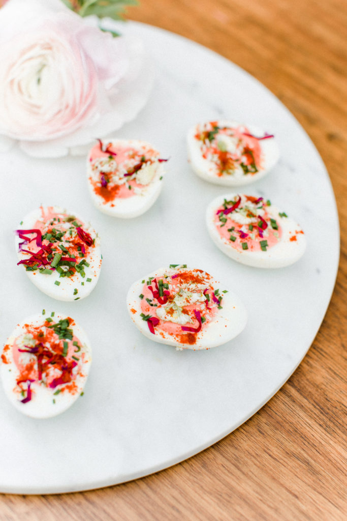 Today, I’m chatting about one of my favorite appetizers. The pretty little deviled egg. Ever since I was little, I have been obsessed with deviled eggs. They are probably, no they are definitely my favorite appetizer. A little picky on the choices of what kind, but always down to try new ones, although no crab ones. Can’t do it. When it comes time for Easter Sunday, I know that I’m going to be munching on ALOT of deviled eggs. My family has figured out to make extra cause I usually inhale four right as I walk into my aunt’s house on Easter Sunday. The past couple years, I have been playing around with deviled egg recipes to create my ultimate favorite deviled egg. It has to have three things to be the best for this deviled egg lover. One, it has to be yummy, obvi! Two, there has to be some crunch to it, no one likes a soggy, mushy egg. Finally, it has to be one pretty little-deviled egg! You remember our feature a couple of days ago on the Easter tablescape right? Well, you might have seen those babies make an appearance. Today, I’m giving you all the details so you can make it this Sunday! Or any day. Is there a national deviled egg day? Hmm….