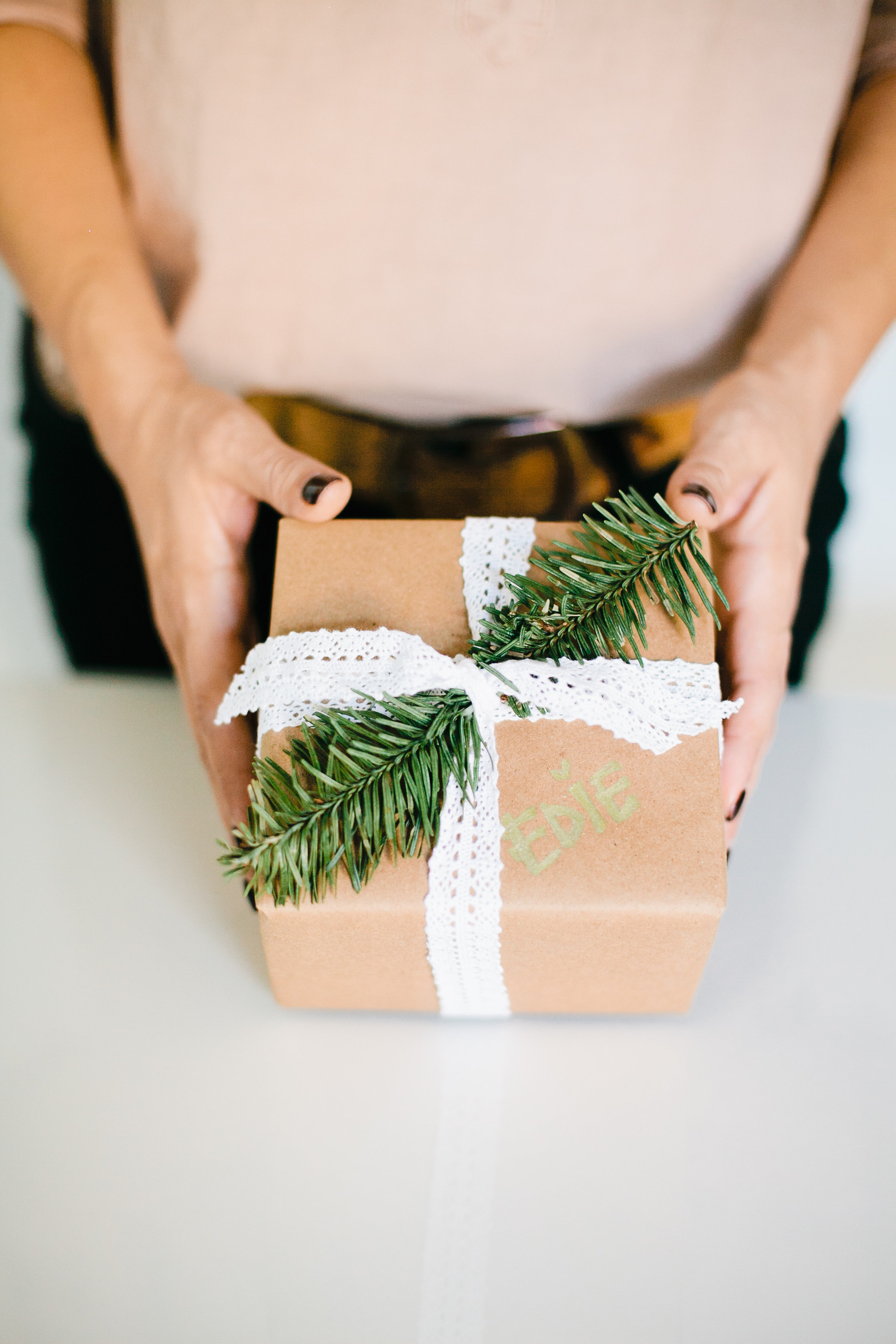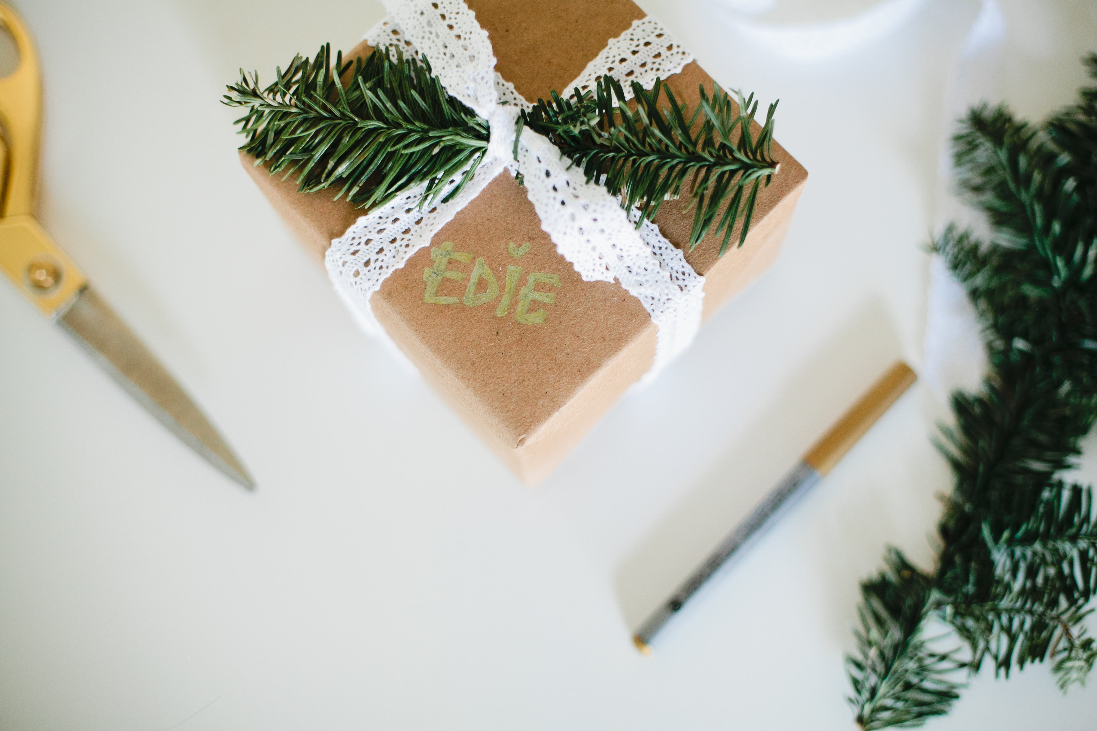 The second theme intregrates craft paper. I love a simply wrapped gift with holiday trimmings and personalized details.