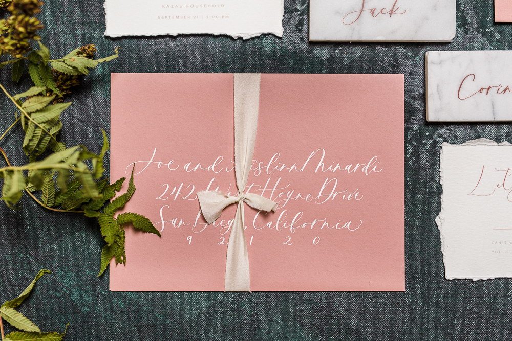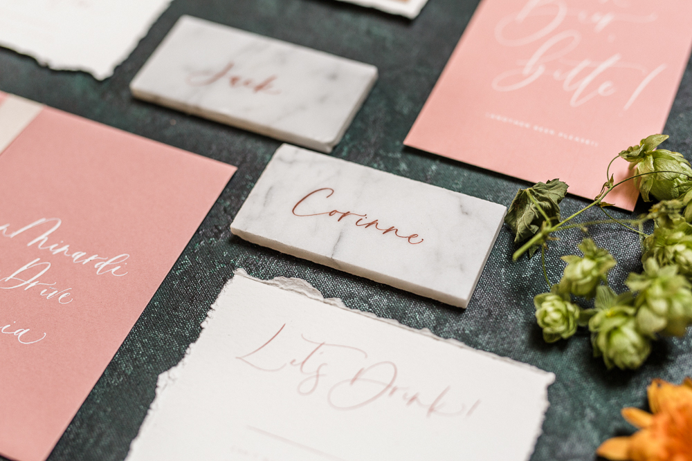 Let’s start with this stunning invite suite by Proper Letter. I am always amazed by her talent, did you see her custom labels for Abby’s pantry yesterday?! Well she also lends her talents to gorgeous wedding and event pieces! We are working on a Mexico wedding with her and I can’t wait to see her talent even more! We styled this invite on one of Chasing Stone’s new styling surfaces, isn’t it gorgeous?!