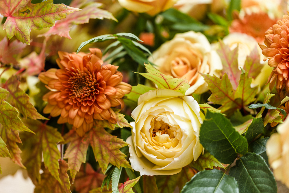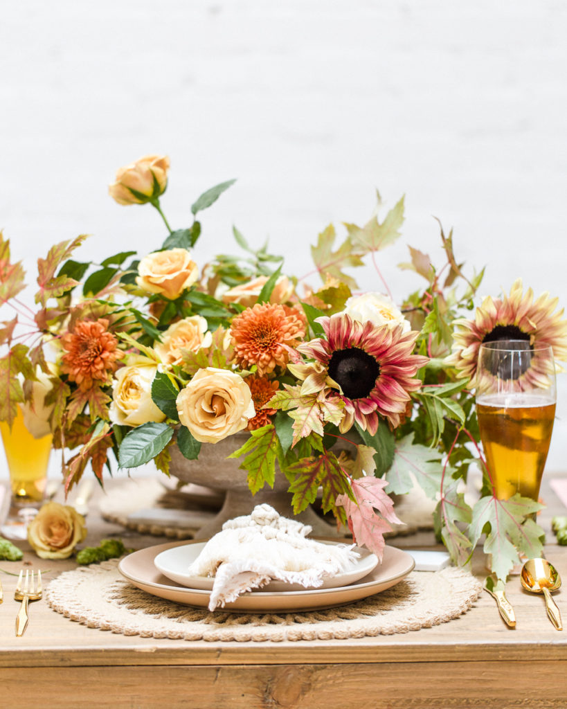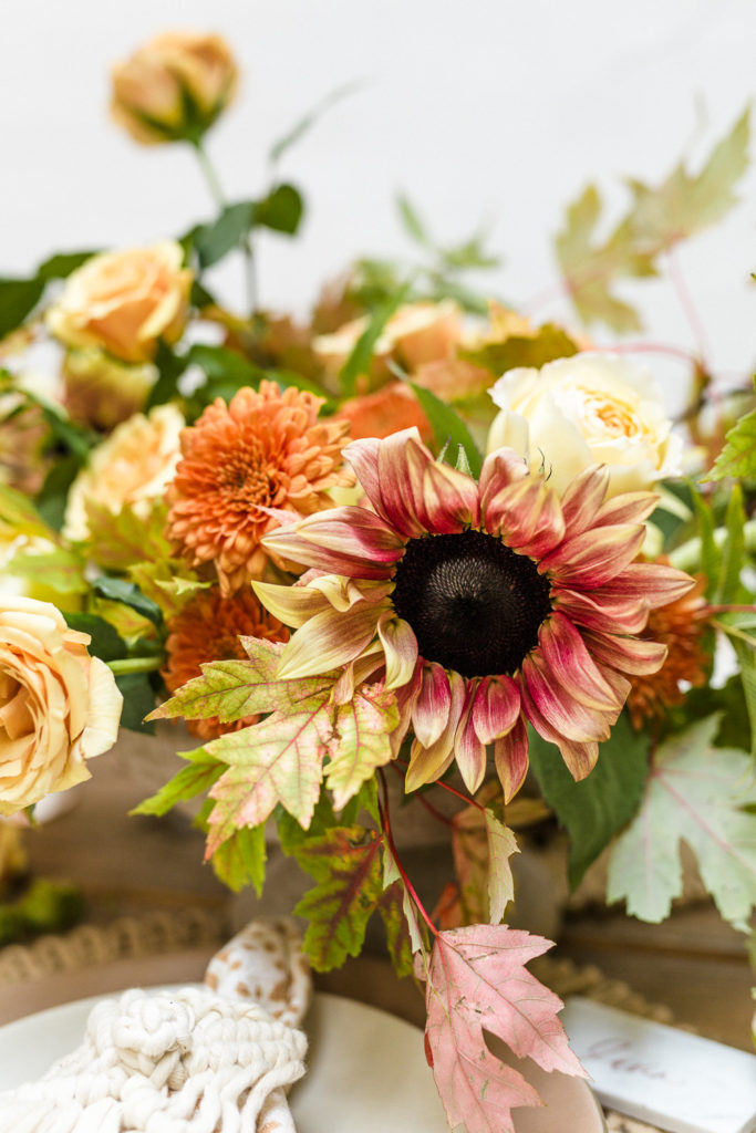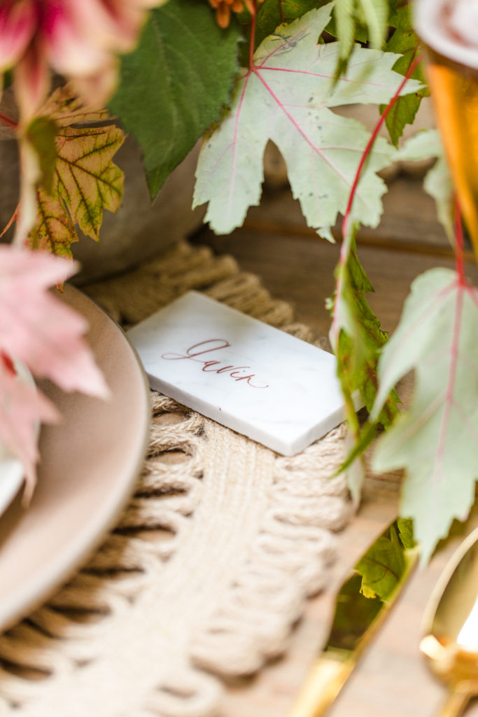 We set the table with all of Fall’s finest colors. Rich auburn, crisp yellow, lush greens, it had all of the essentials which Third & Park used in the stunning floral arrangements.