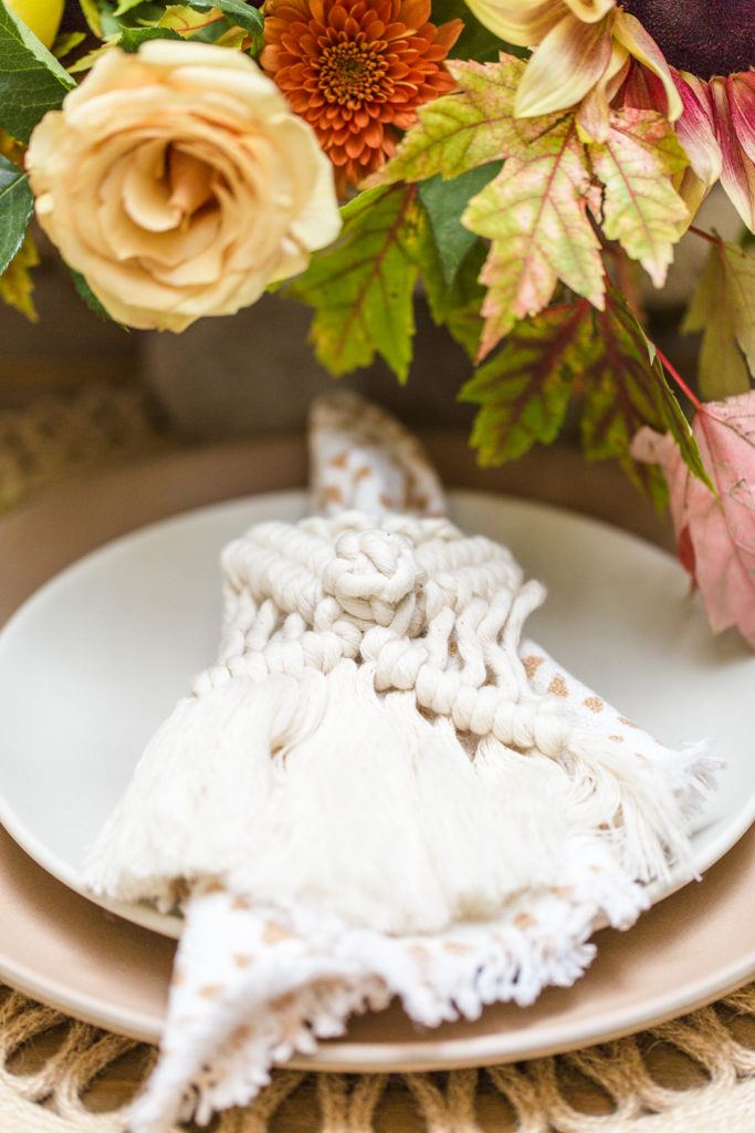I’m obsessed with these macrame napkin rings by The Neutral Knot wrapped around the Hostess Haven napkins. It’s just all so pretty, I think you need these in your house at the dinner table every night, am I right?! You can purchase them here! They are so pretty and so affordable! A must have for all the holidays approaching!
