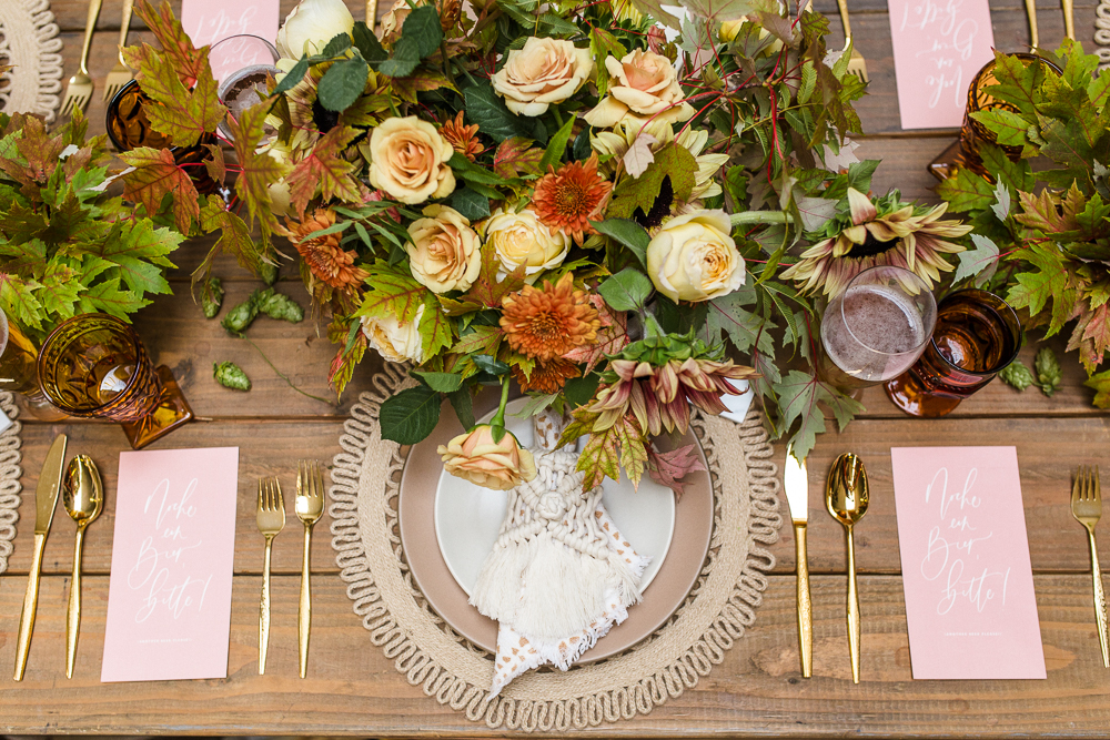 I decided to put our Beijos spin on Oktoberfest this year and class it up a bit! Honestly, when we shot this one I was beyond excited with the way it turned out, it’s one of those projects that you plan for but when it comes to life it exceeds your expectations… You’ll see! We are also featured today on Green Wedding Shoes today!
