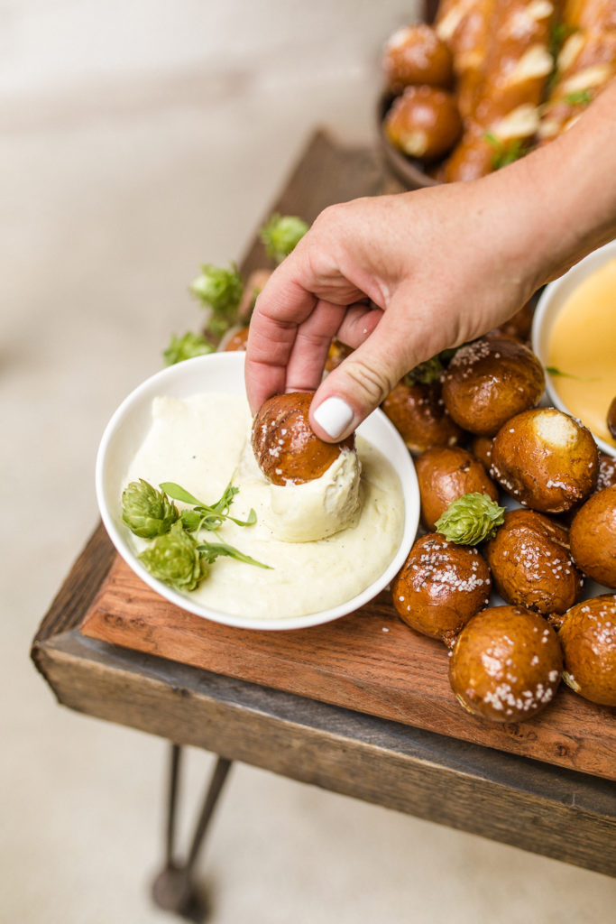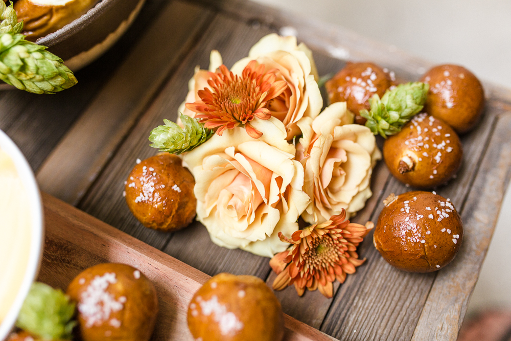 I mean… LOOK AT THIS SPREAD!!! Give me all the carbs in the fall, don’t you just crave them?! They had three dips – a beer cheese, mustard and all of our personal favorites – artichoke. All of us at the shoot couldn’t get enough… it was rich, it was delicious and boy was it worth it!