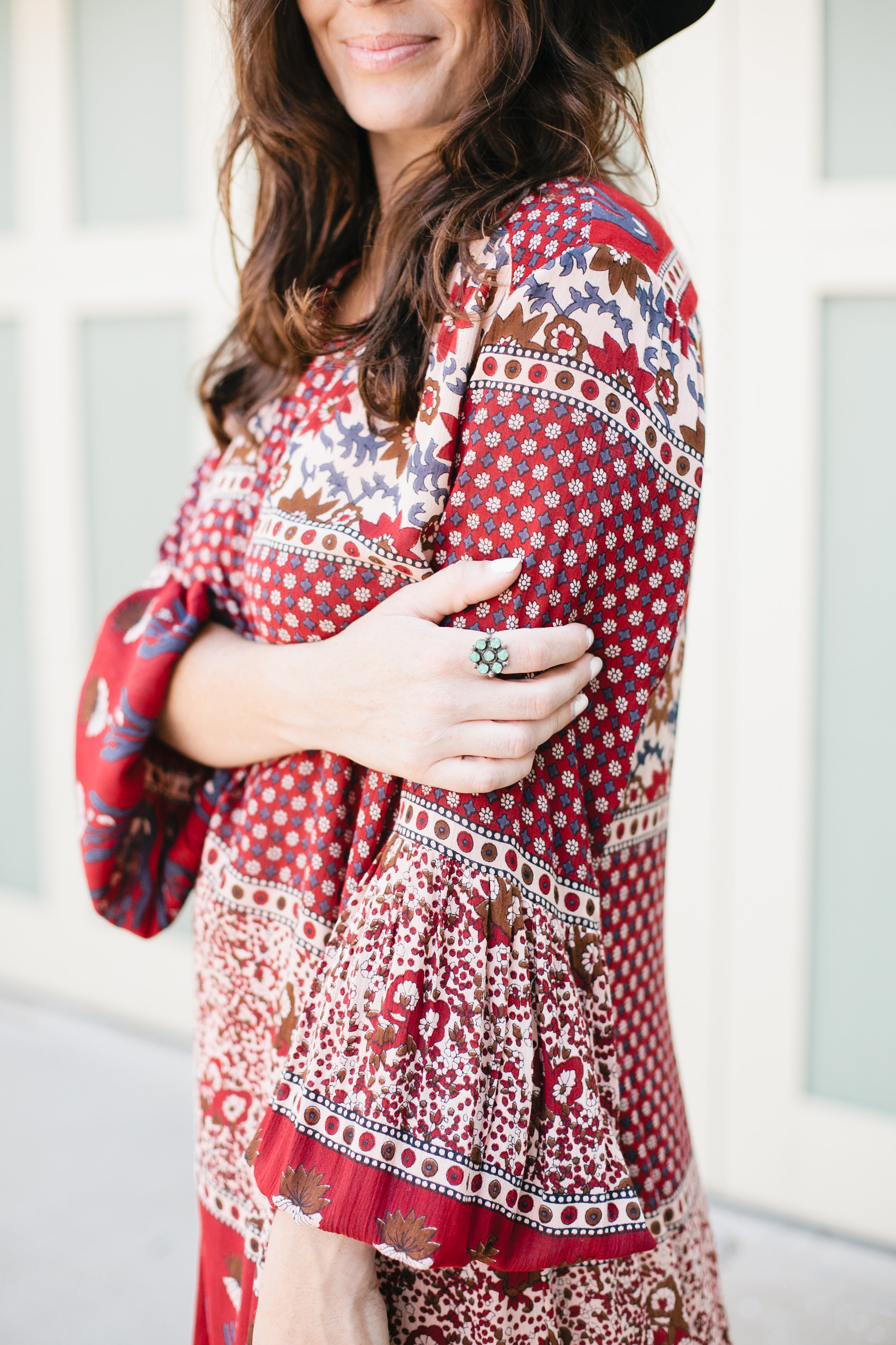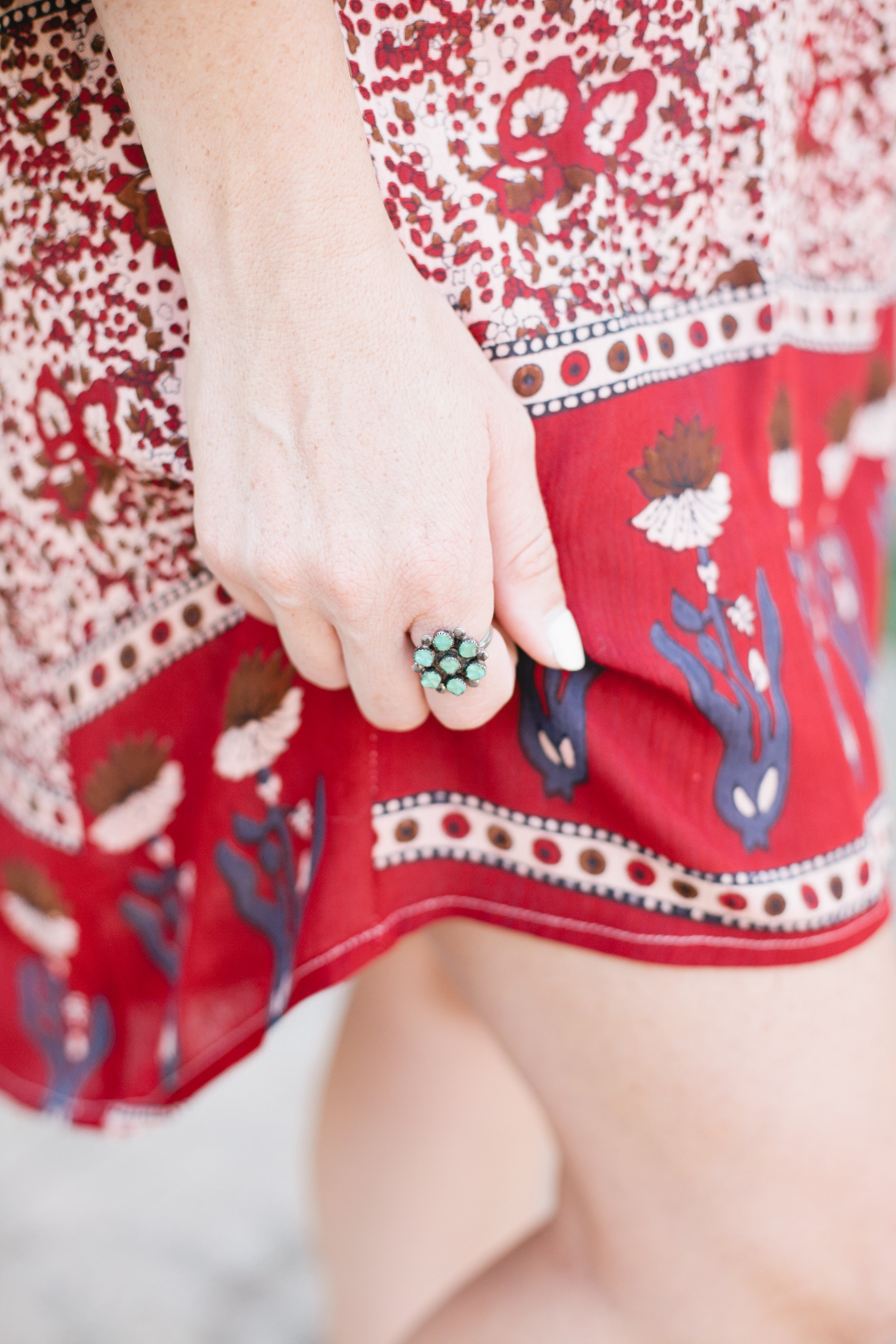 meganwelker-beijos-prism-36 Loving the detailing of the bell sleeves and the pattern on this dress.  We also love Prism’s vintage jewelry collection that they curate from the Long Beach Flea Market every month… This pretty turquoise flower ring caught my eye.