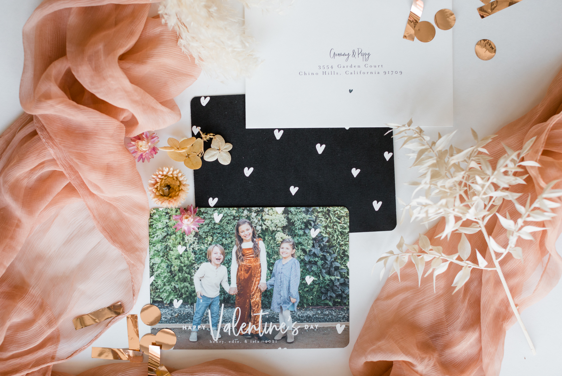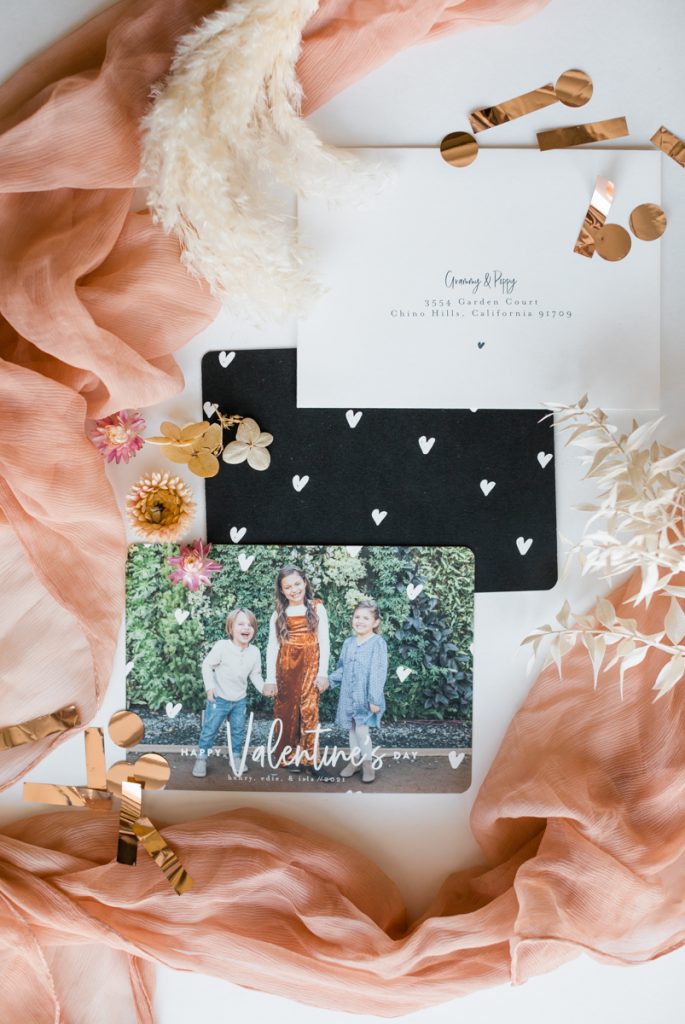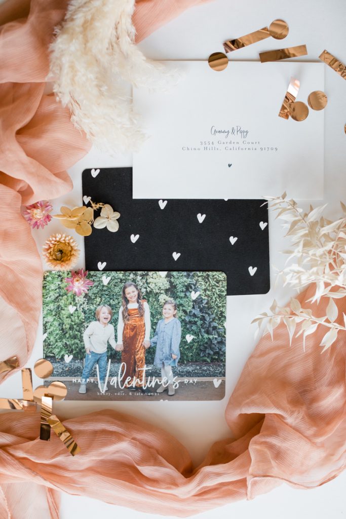 I picked the Rough Edge Valentine’s Day card for its color palette and the clean simple look it had to it. When I pick out cards, I try to have them flow with the color scheme of the photo, and these caramel and pink rustic tones went well with the colors my kids were wearing. It’s almost like the card was designed for that picture. I picked the picture of them squeezing each other cause you feel like we are sending a hug in the mail for our dear family and friends. The funny, thing about this pose is we do it every year. It started when they were super little, and it’s something family and friends like to see each year. Sending this photo of them felt extra special this year.