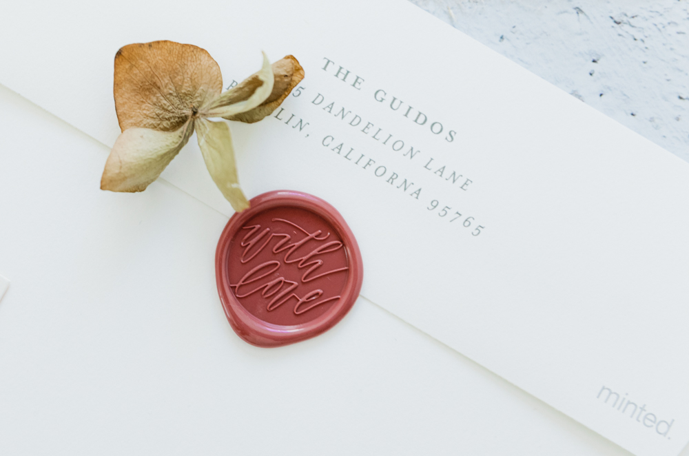 We also added an elegant touch with Artisaire’s “With Love” wax seals. Don’t you think it ties it all up in a pretty bow? A great touch to make your card extra special.
