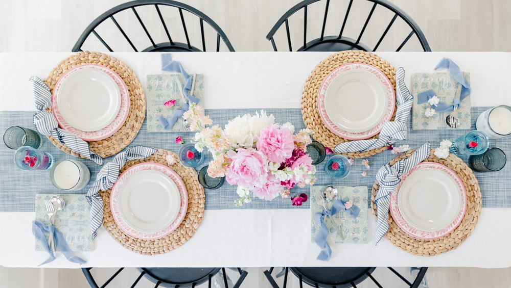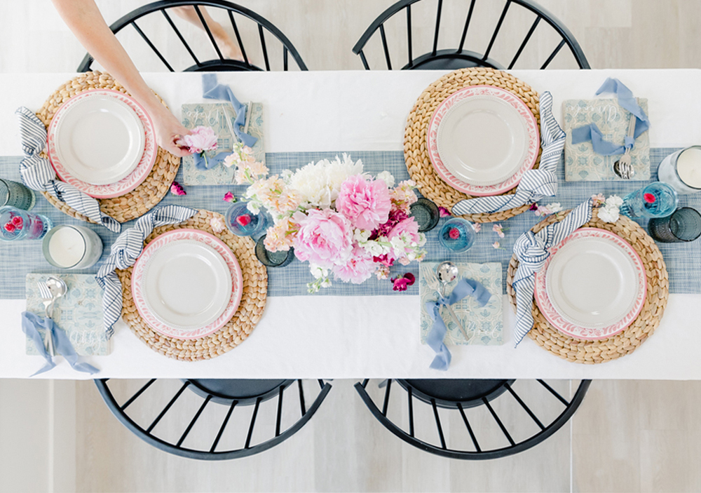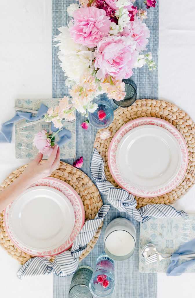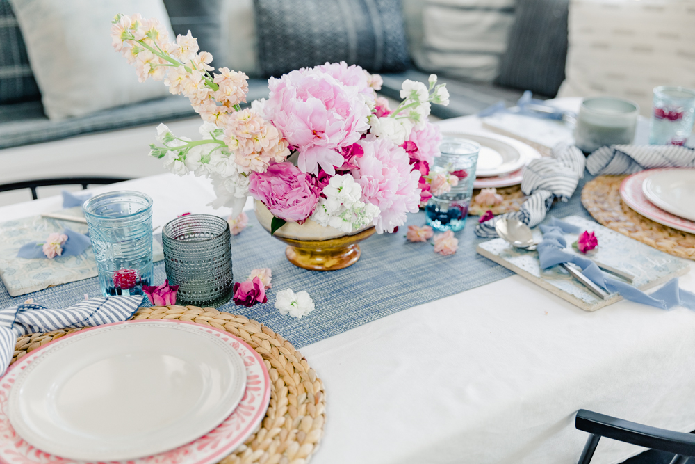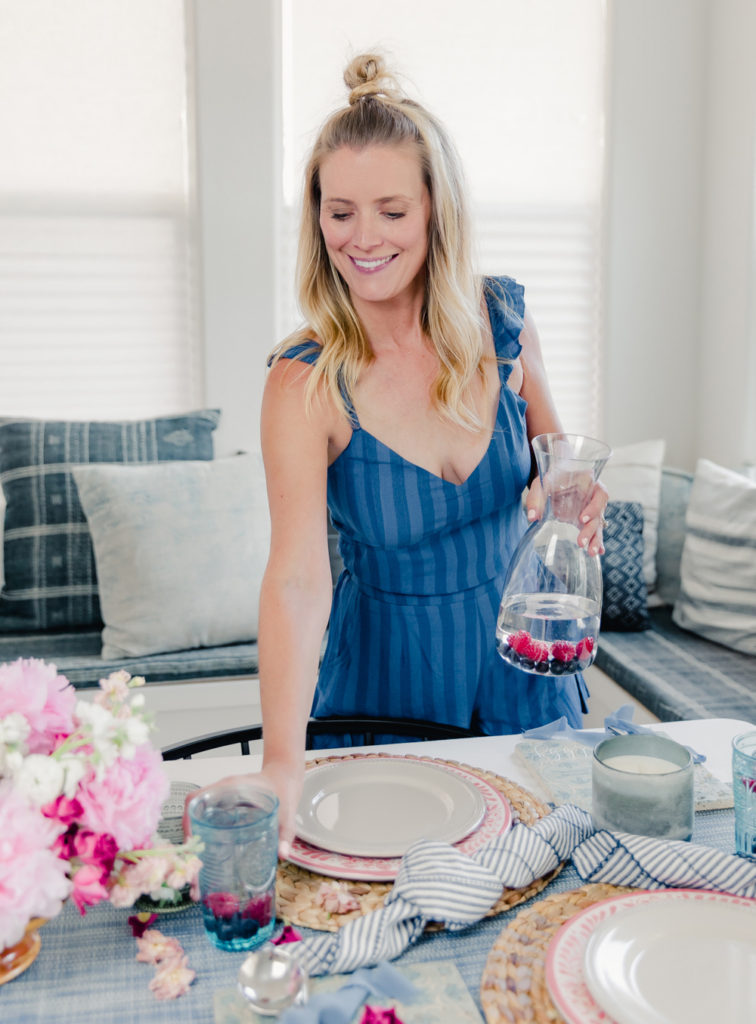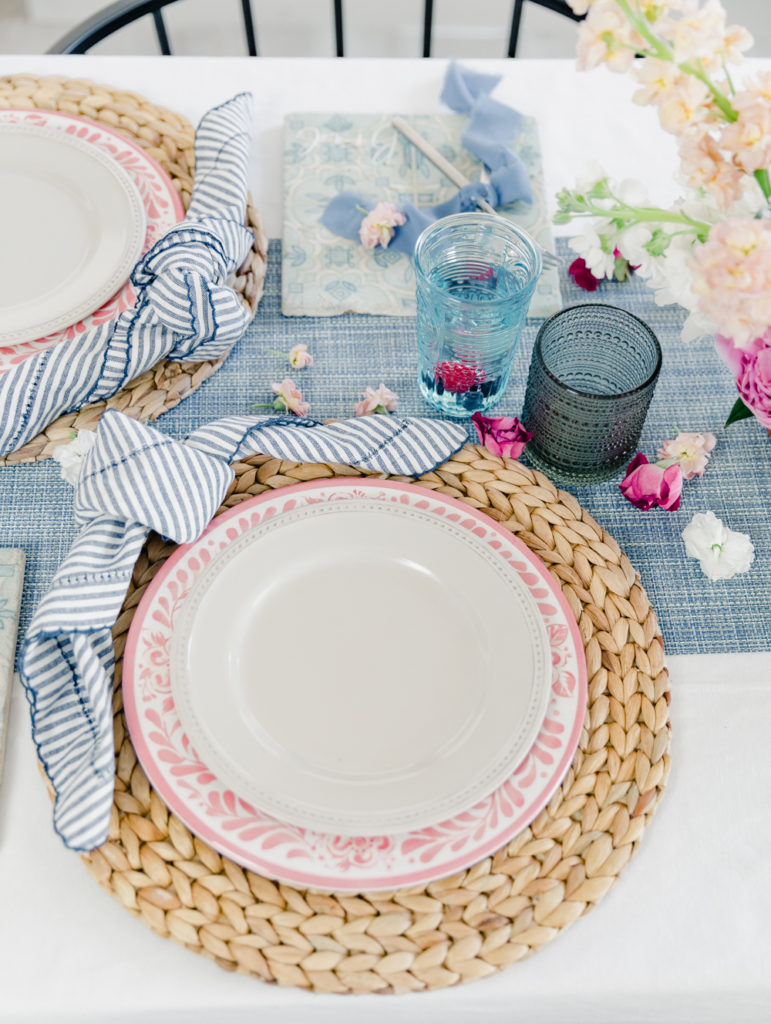 We are full of 4th of July inspiration over here this week! Can you blame us?! It’s one of the best holidays to celebrate. Anything with celebrating America, summer nights, hot dogs, and fireworks, I’m there! This year, I’m hosting and I couldn’t be more excited to entertain. I love setting the table for dinner parties, it brings me a lot of joy! Getting a table ready is not only fun but so easy! My biggest tip: Do it the night before! You will have plenty of time to make it perfect without the stress of time. This year, I used Sur La Table’s outdoor dinnerware and glassware. Keep on scrolling to see how I did it, and how easy it is for you to do at home too! Plus, you can shop my favorites at the end of the post.