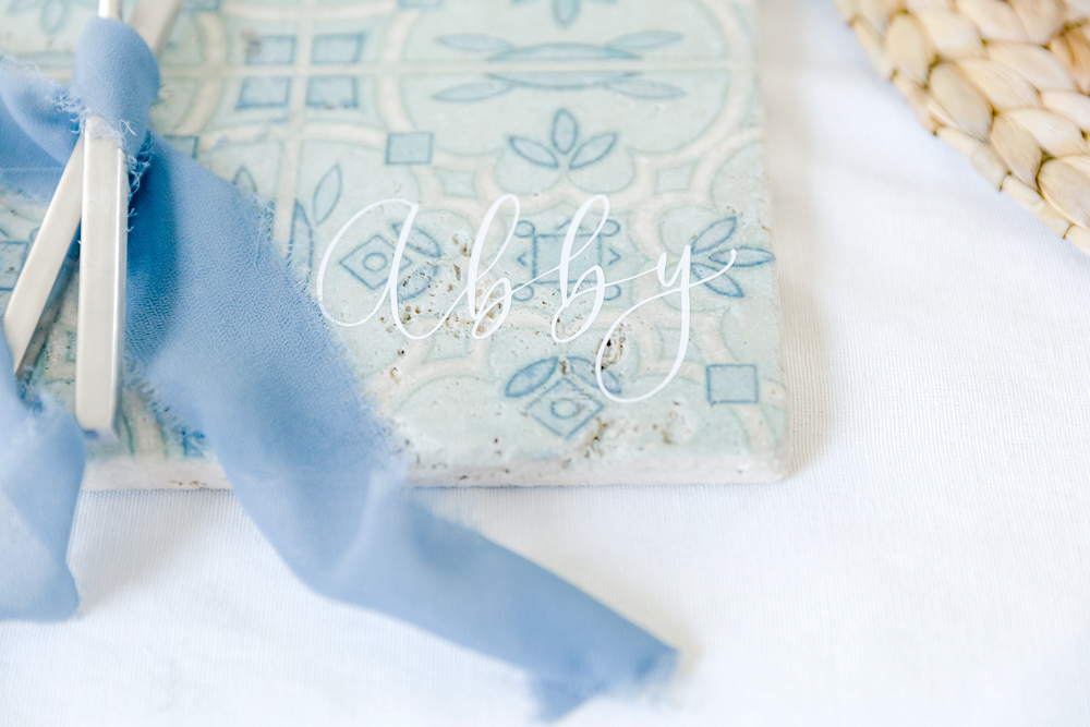 We love to knot our napkins, it’s another Beijos detail you will see a lot. It’s so easy to do! I used the Navy Striped Napkin from Sur La Table. I love the stripes mixed with floral, so pretty.