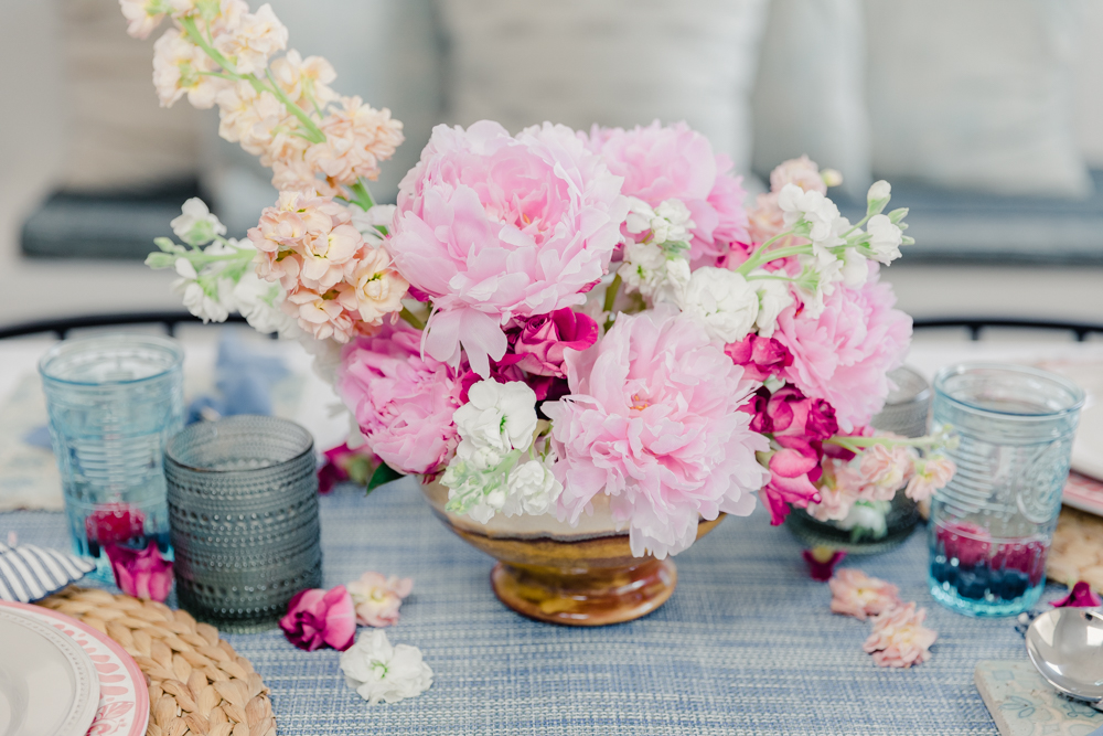 Another fun Beijos detail that you will probably always is LOTS and LOTS of loose flowers. We are smitten over these details! Just take the heads off, and place them around the table. I like to add most of them around glassware and flatware. We also add other details like fruit, greenery, candy, and confetti. With it being the fourth of July, you can add fresh fruit, confetti, sparklers, the list goes on! Have fun with it!