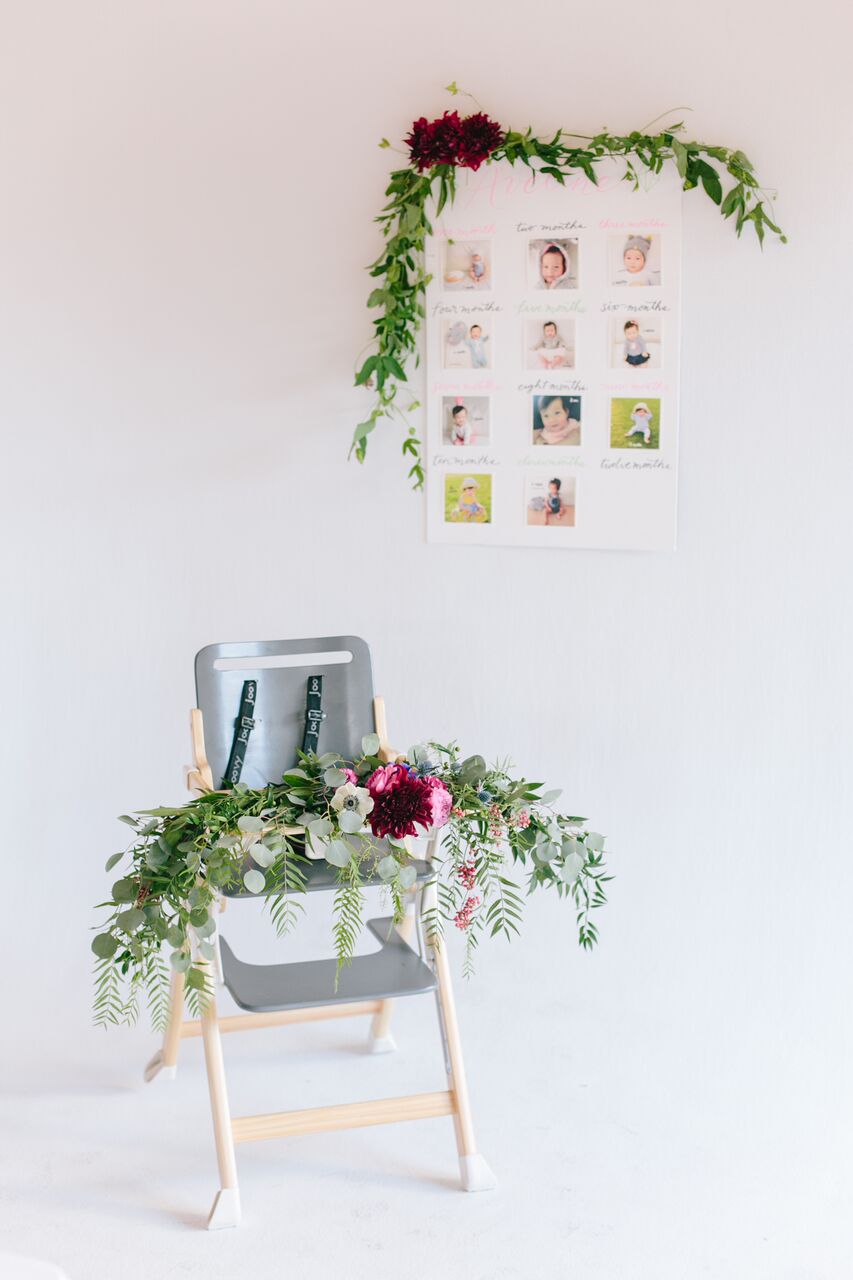 How cute is Aveline and her smash cake?! This is one of our favorite parts of every 1st Birthday!! Gotta have some extra details like the florals by MV Florals on the high chair to dress it up a bit too!