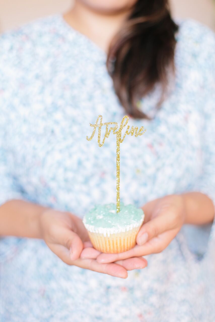 Let’s start with the invite, shall we?! Aveline’s daddy does graphic design and we had no problem putting him straight to work, haha! Let’s just say it’s a plus to have a dad who is talented and can create anything our little hearts desire! How cute is this invite?! And how amazing are these cocktail stirrers and cupcake toppers created by The Roc Shop?! More on these later…