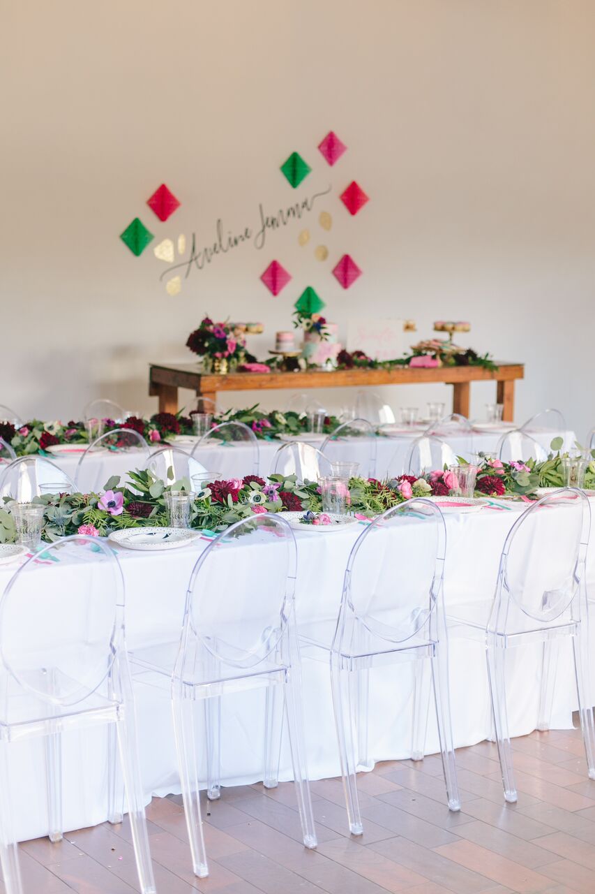 For chairs we used ghost chairs from Stephanie’s Linens and were so happy with the decision on these! They added a fun and modern feel to the party that flowed perfectly with the aesthetic.