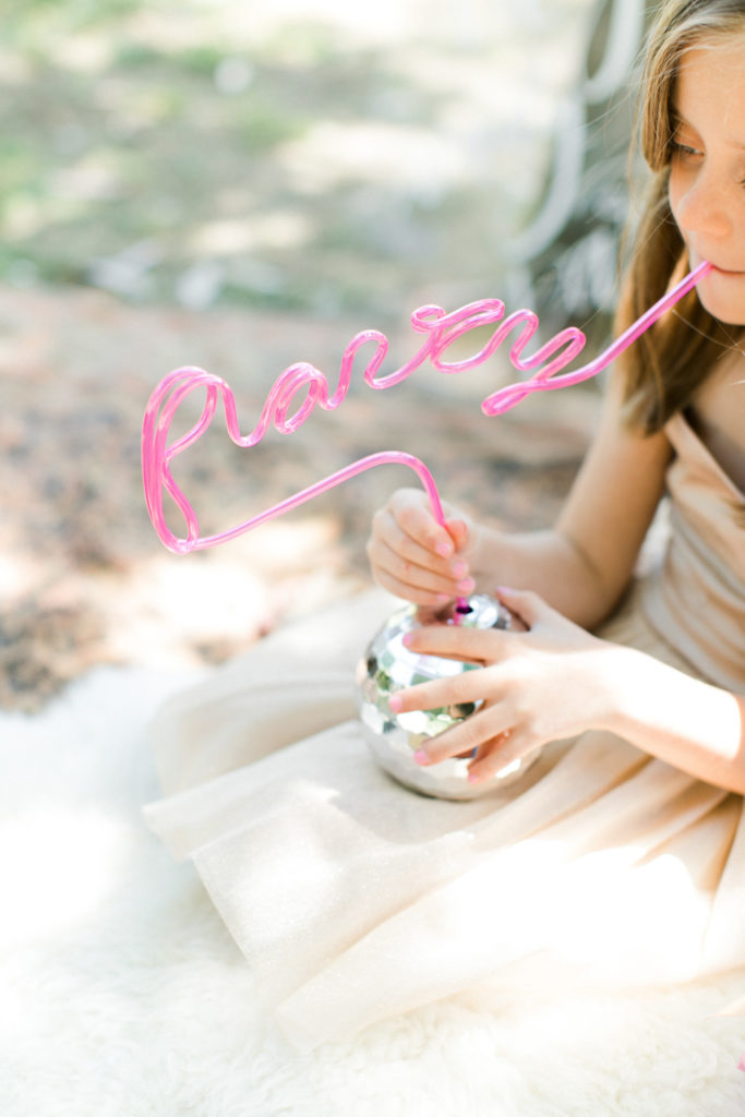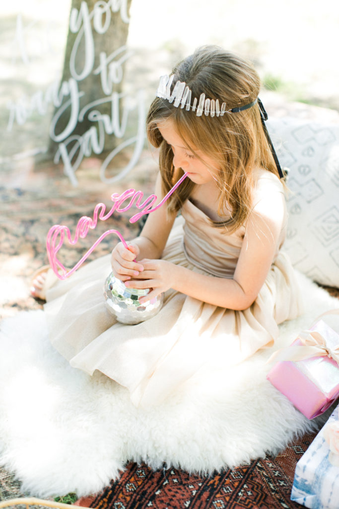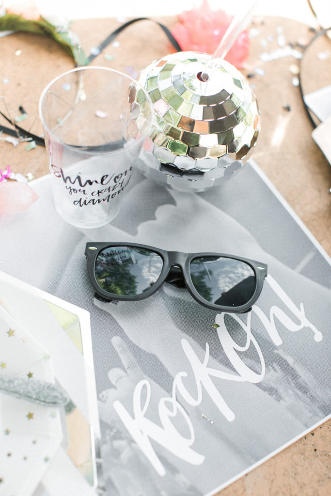 Let’s not forget the disco ball details. The disco tumblers from Ban.do at each place setting was secretly chosen for me. Ha! Jk! I like to include objects like the tumblers that can be used during the party and taken home as a favor at the end of the party. The kids also took home princess crowns for the princesses and black ray bans for those rockstars.