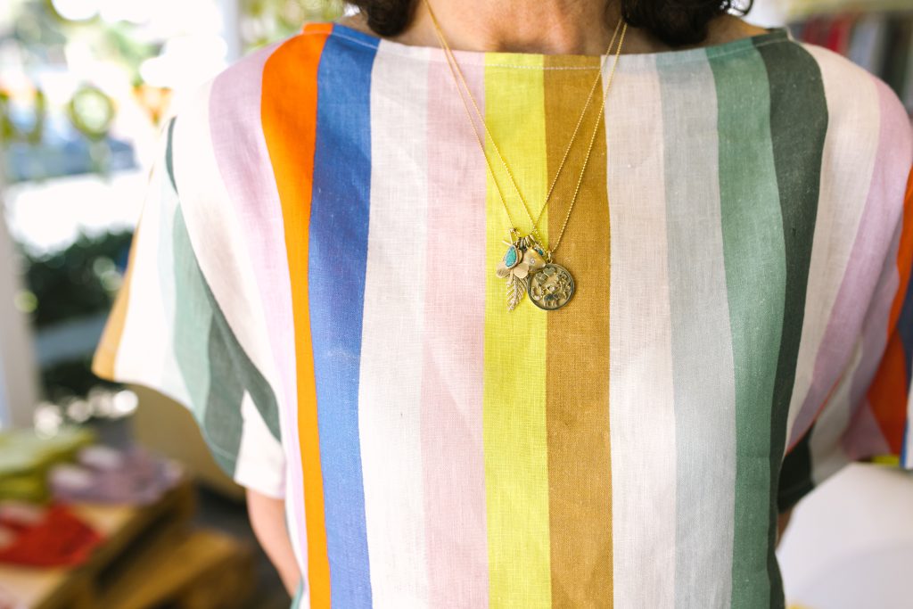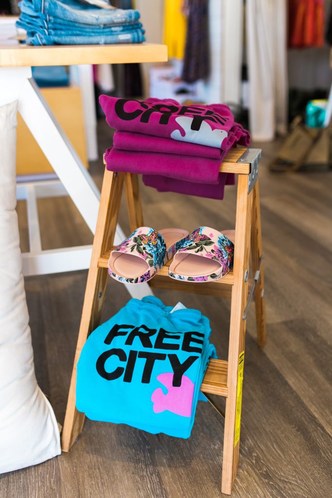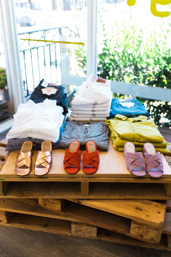 I’m obsessed with anything from the brand Le Superbe. They take classic styles and add an unexpected twist. Like a camp sequin skirt or a chino pant with painted stripes down the leg. We also brought Mother Denim back (by popular demand) and they have a jean called the Tomcat that I will live in. Oh, and for the hot summer days, you will find me in any dress by Natalie Martin.