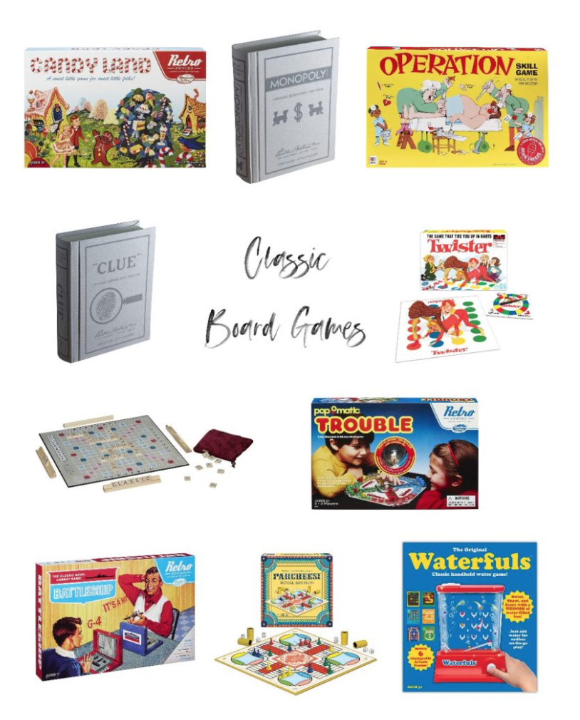 candyland | vintage monopoly | operation | vintage clue | twister | scrabble | trouble | retro battleship |