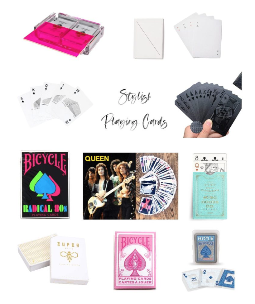 elegant pink playing cards | white playing cards | mountain playing cards | black diamond waterproof playing cards | radical 80’s playing cards | queen playing cards | misc. goods co. green playing cards | super bees playing card deck | pink bicycle playing cards | hoyle waterproof playing cards