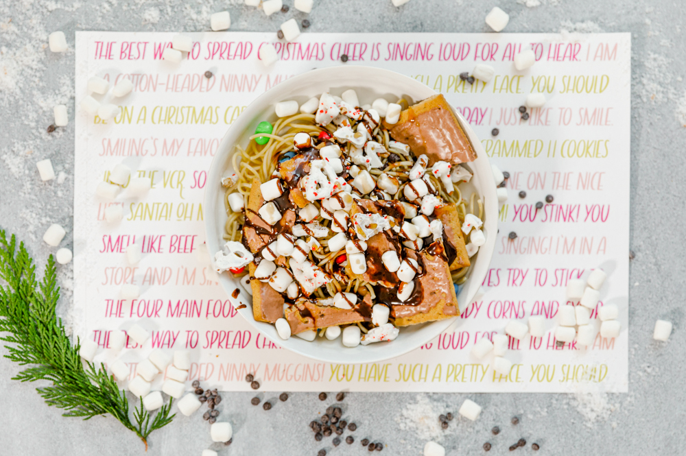 We elves stick to the four main food groups! Candy, candy canes, candy corns, and syrup! Looking for a fun breakfast experience for your little ones?! Make them Buddy the elf’s candy pasta. This is a great Christmas activity! (Maybe just once though) Binge watch the movie, and then make them the pasta! You know you all want to try it! I’m not saying to have this every Christmas, but this iconic movie will have you wanting to indulge in everyone’s favorite cotton-headed-ninny muggins’ breakfast pasta.