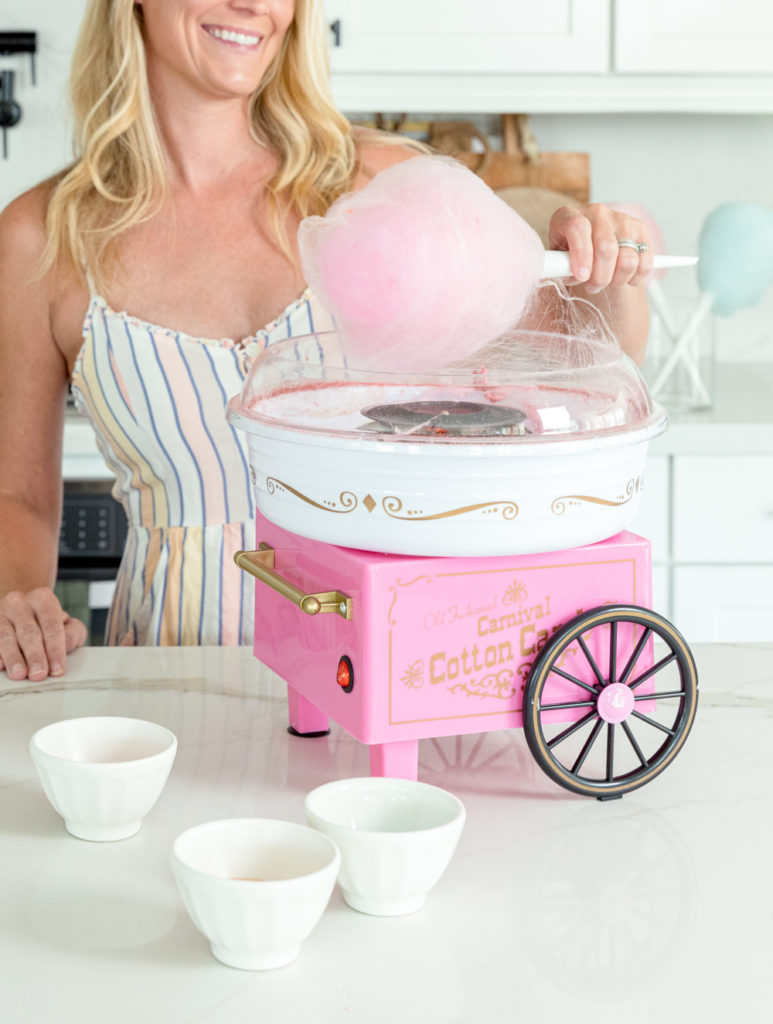 I had to follow up with a summer fair item after Jacquelyn’s cute fair inspired birthday party for little Cruzy! See it here if you missed it. I knew I wanted to do something with cotton candy. But, I wanted to do a twist on the classic fair treat. So I thought, adult version. And that is what we are doing today! Spiked cotton candy! I mean, you are living your best fair days out with this spiked cotton candy. What is better than booze and sugar!?! You will need a cotton candy machine, and Nostalgia Electrics makes the CUTEST pink cotton candy machine. Get it here! You will thank me later. It is a massive hit with the family. Even my husband was asking for one. So scroll down below to see how to make it, and your best fair life.
