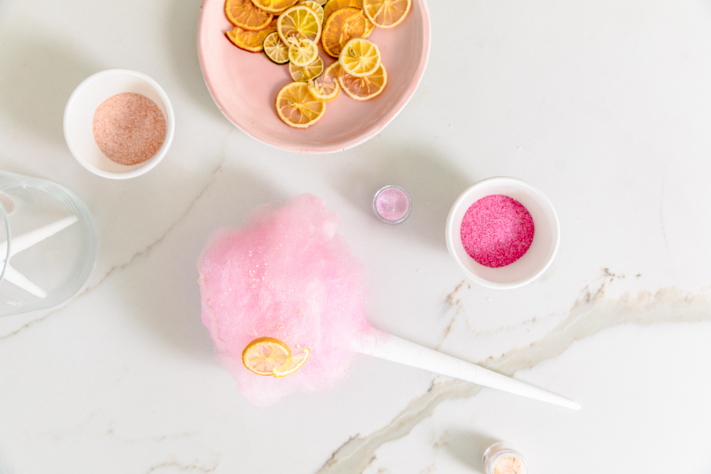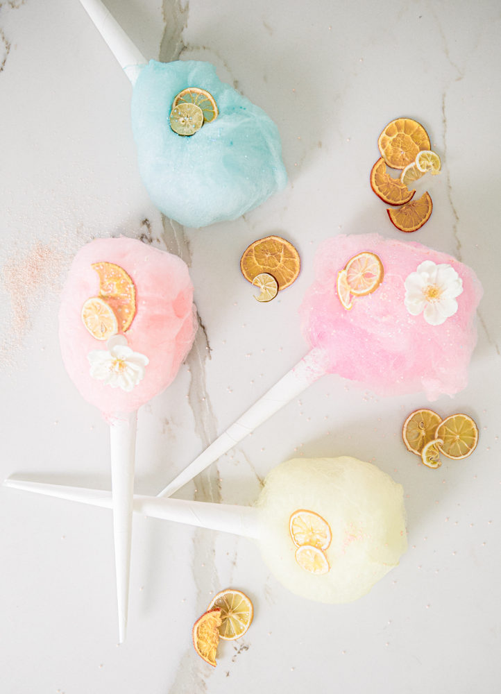 Then follow your cotton candy machine instructions, and spin away! Garnish with some sprinkles and add some dehydrated fruit for a fun cocktail garnish. Watch out for little hands since this involves booze. I highly recommend making them their own non-booze so they don’t try to sneak some when you are not looking!