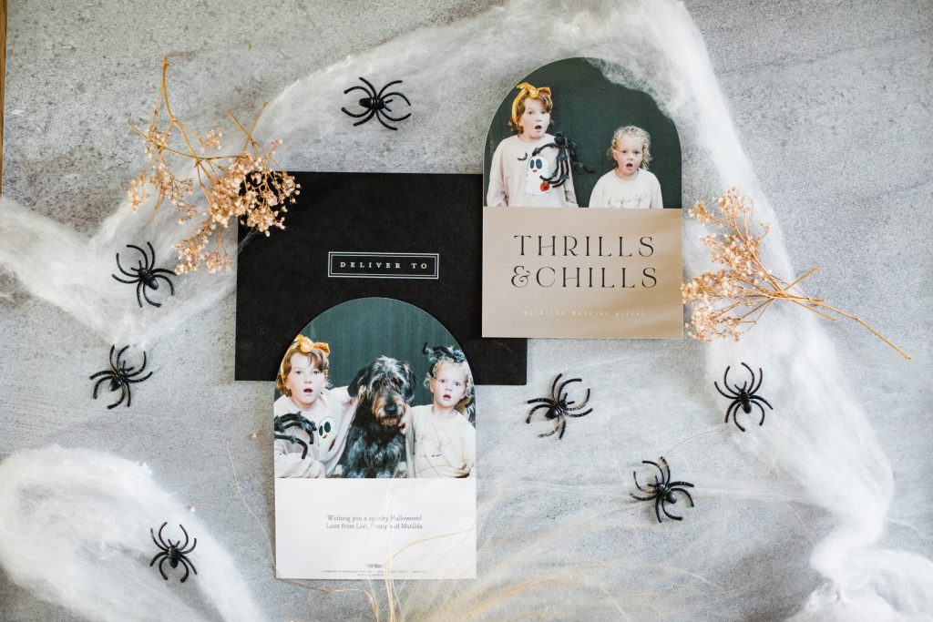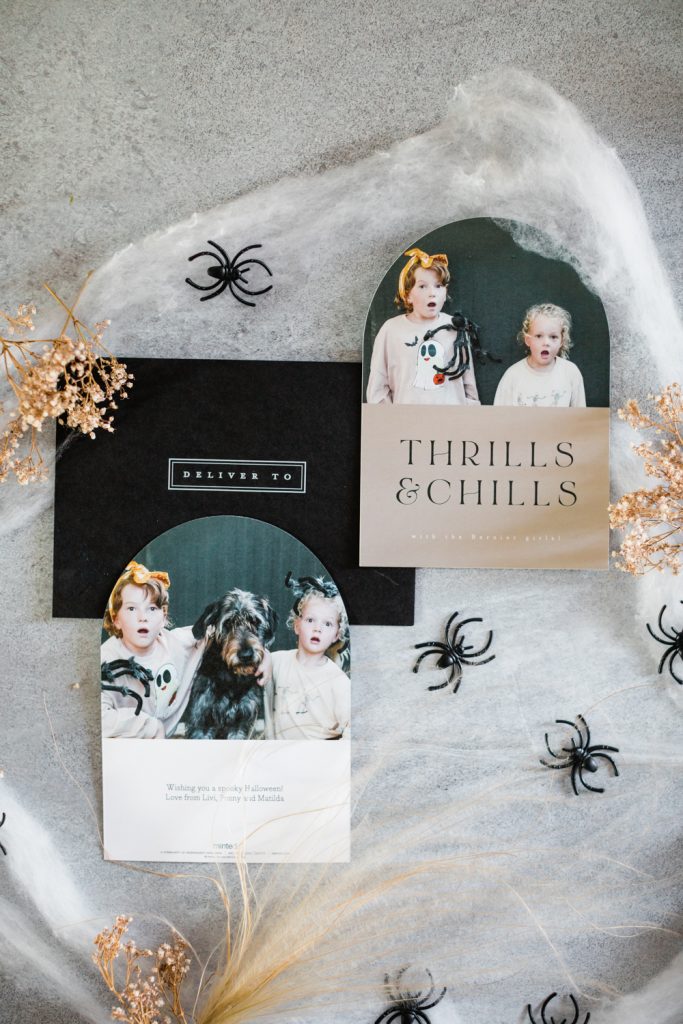 Shop Alison’s card and her girl’s spooky attire below!