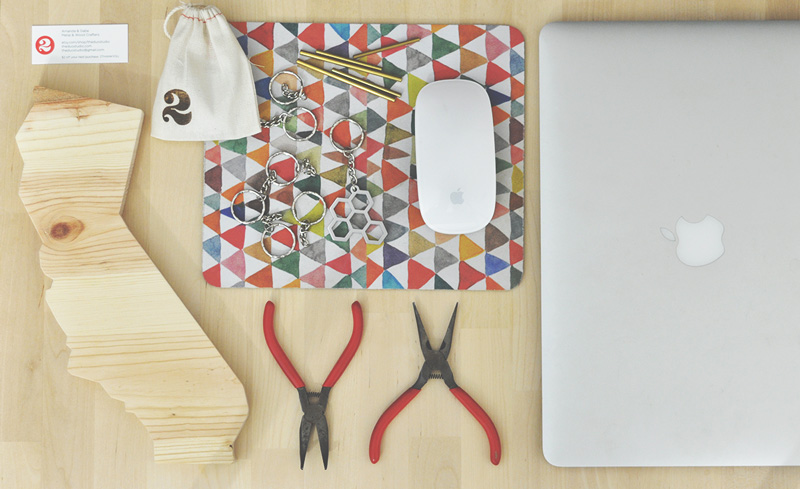 When we got married, we knew we wanted to start something together but we didn’t know what we wanted to do yet. We kind of fell into it by accident – Gabe is a machinist and makes custom parts for cars, motorcycles, you name it. All the manly stuff. He used to bring home little cut outs he made for me at work and one of them was the logo of the design agency I work for. I showed it to my friends and they said it would make an awesome keychain. So we started making keychains! And the response was really great, so we kept going and here we are!