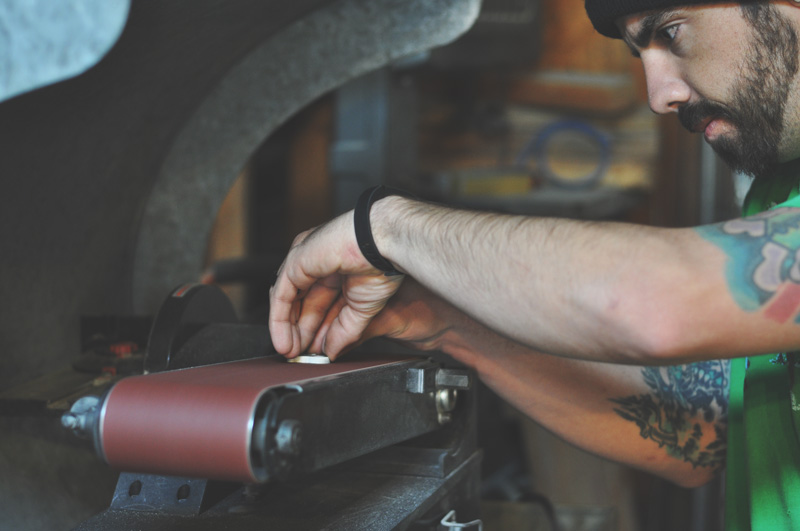 Well, to be fair… We don’t work ALL day together. We both have a role to play. I’ll be on the computer designing and connecting with clients while Gabe is running the machines and handling production. We do all our brainstorming, initial testing, and the details of each piece together. There are times when our visions clash, but we work them out in compromise just like any other creatives.