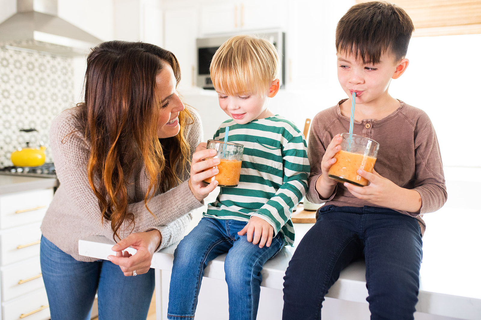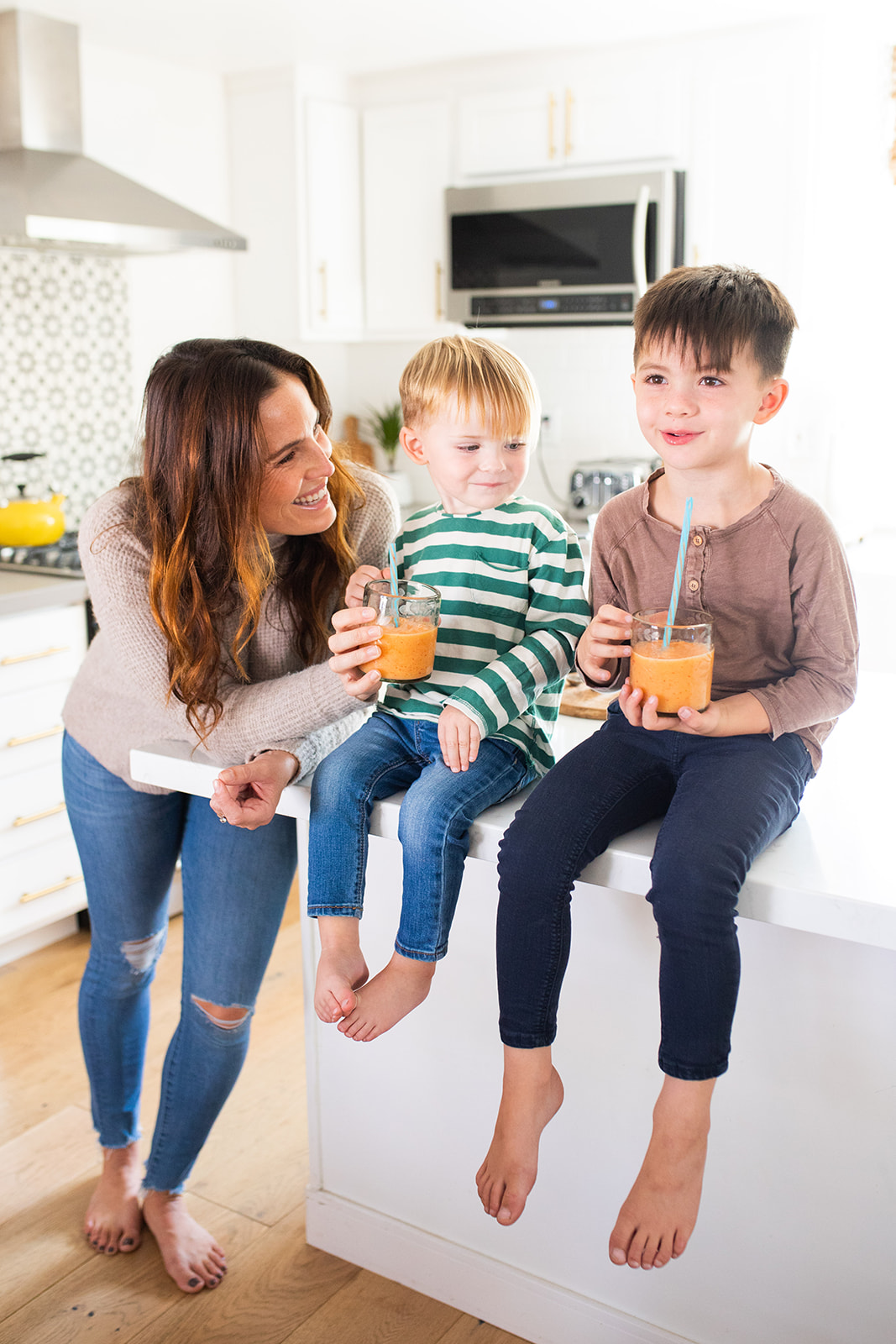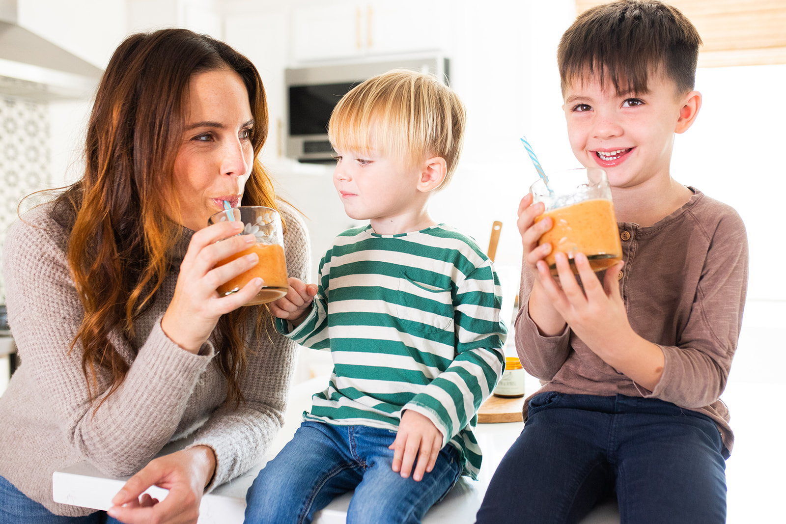 These boys love their smoothies!!! Nice break from pasta, salami and chicken nuggets!