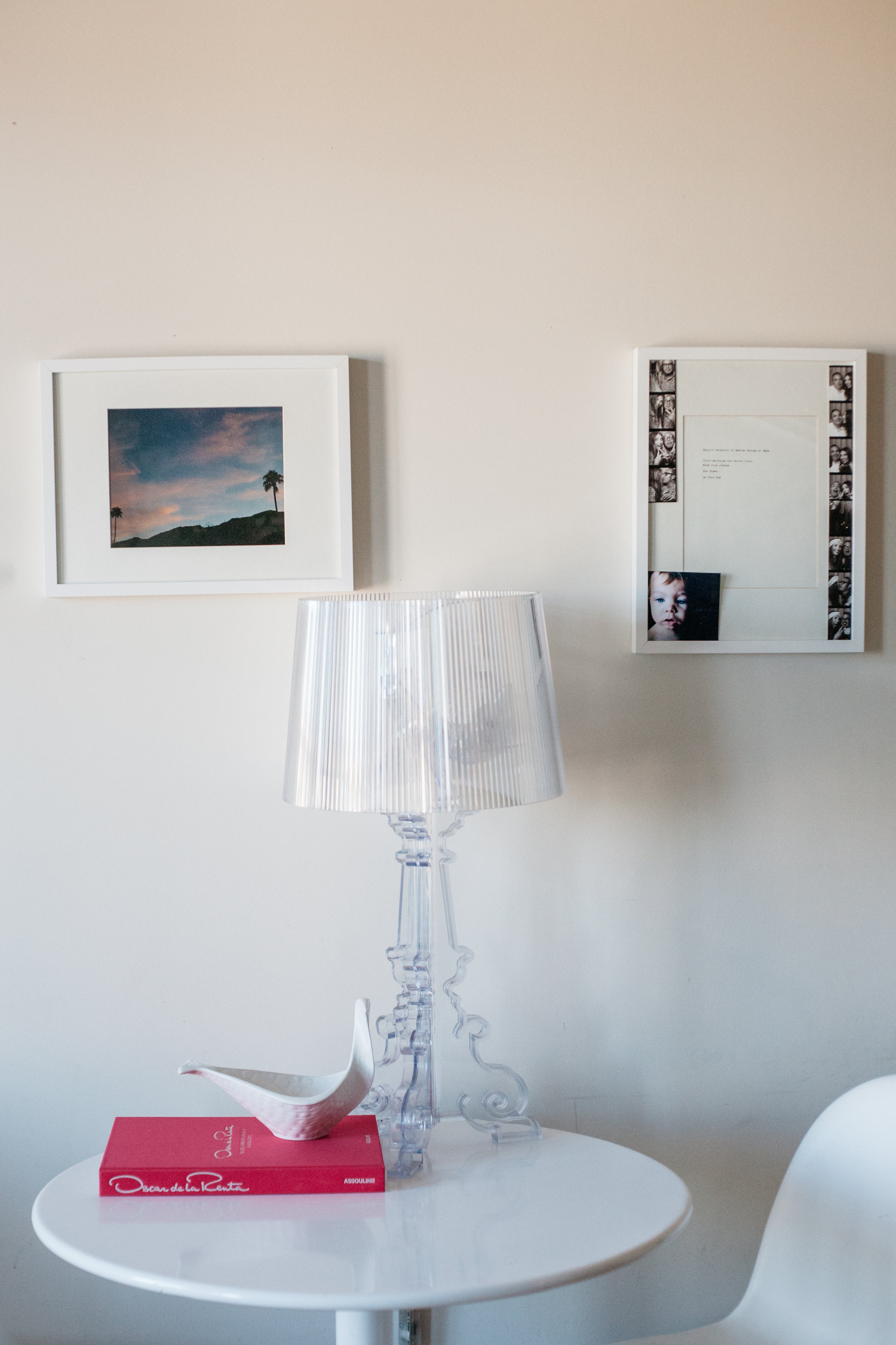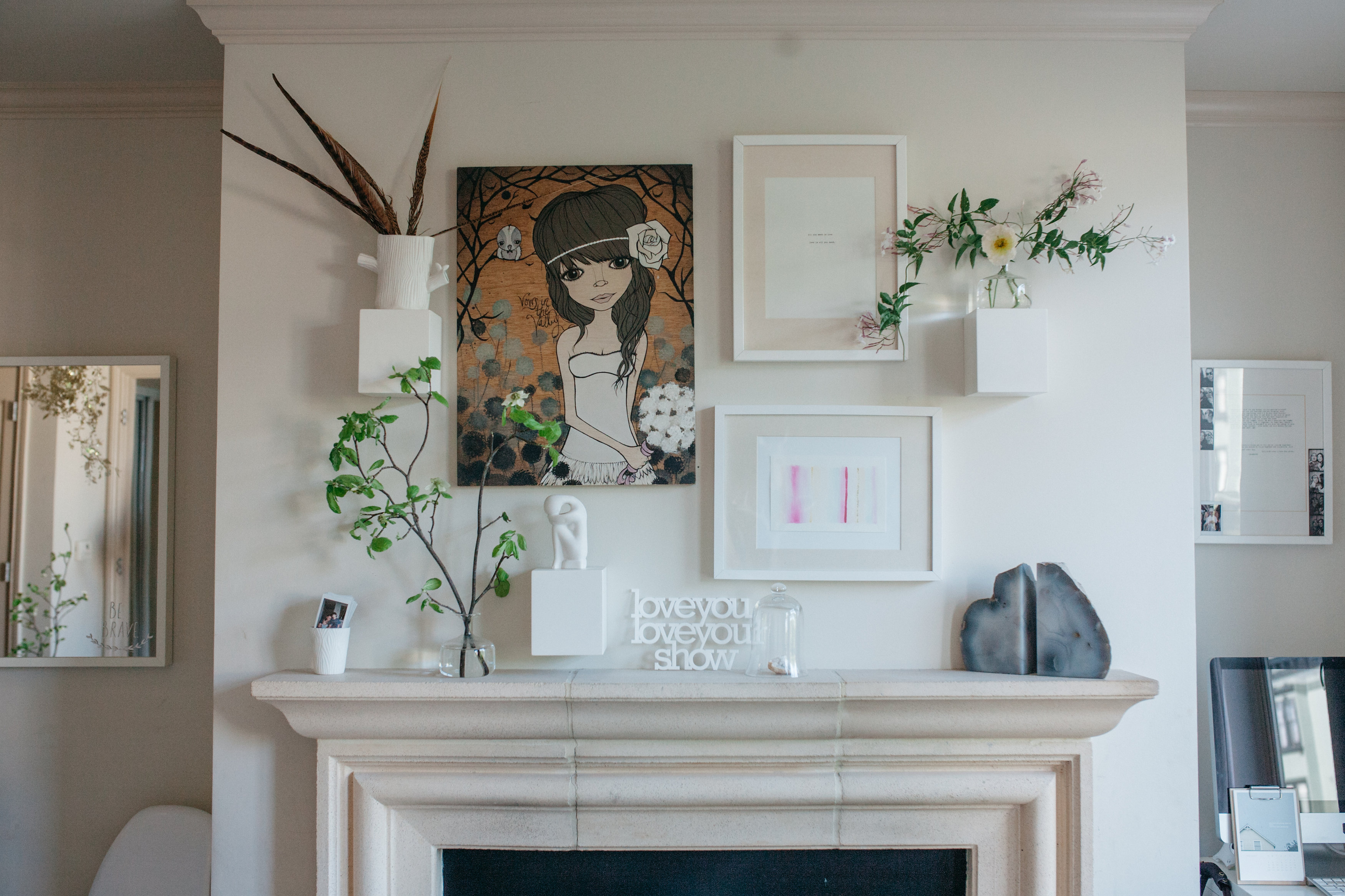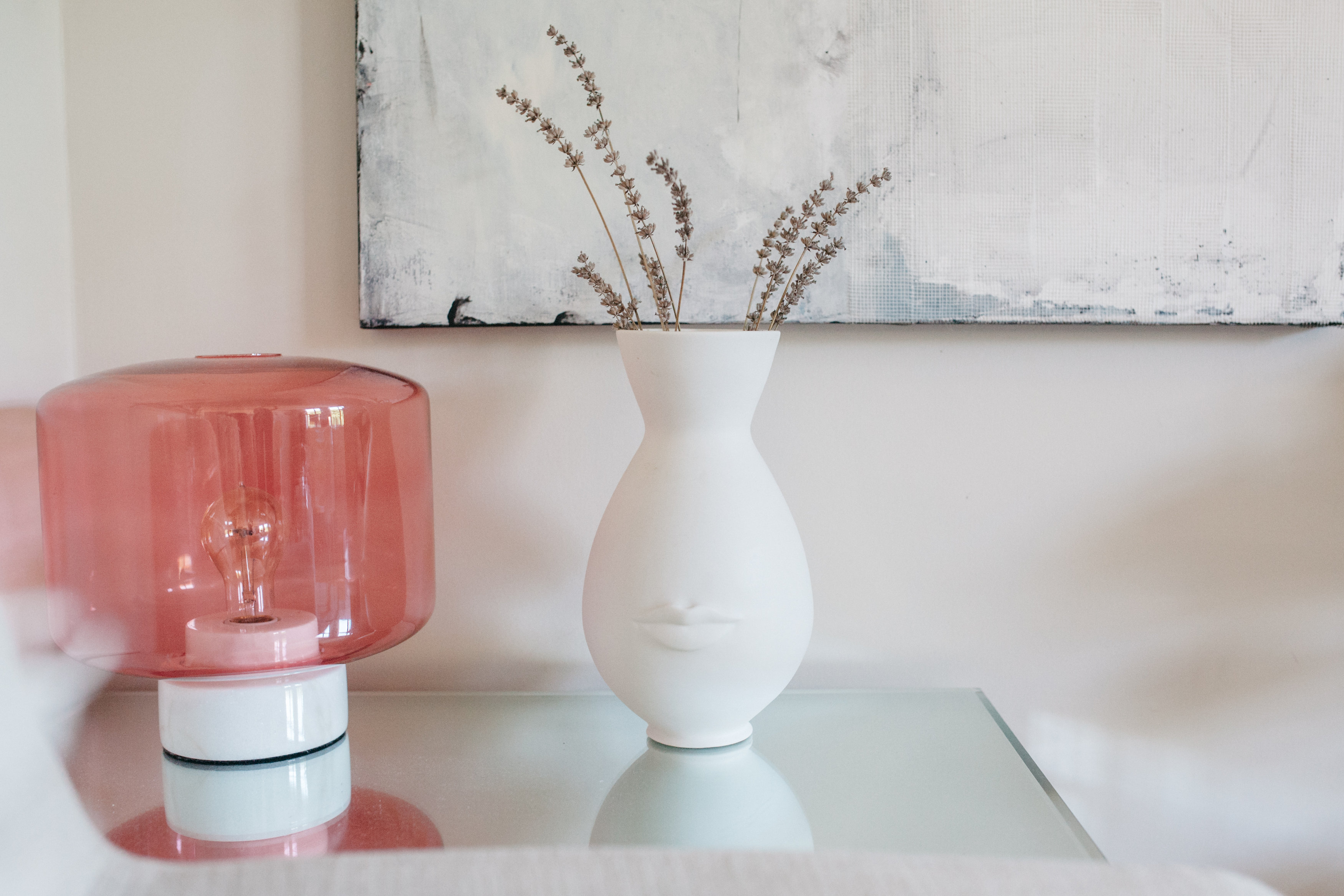 Since our home is small, I really believe in keeping everything bright and light colored. White is such a soothing color to me, so I try to keep that aesthetic in our home. I also love showing off small personal items in our home. Fresh lavender from my mom’s garden, a painting by my mother-in-law, a small white figurine from a trip to Spain. I like to display items that tell a story about our lives.