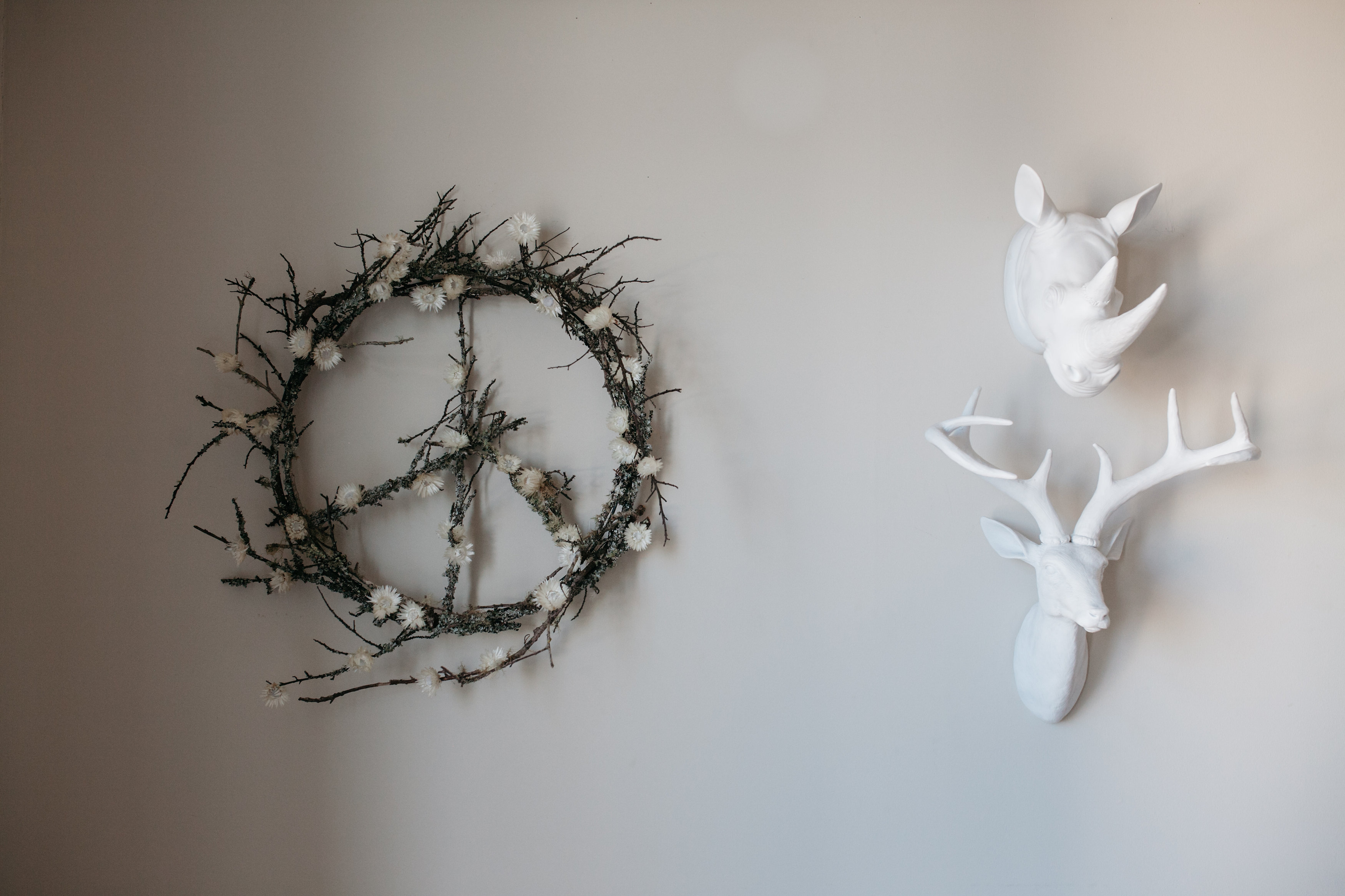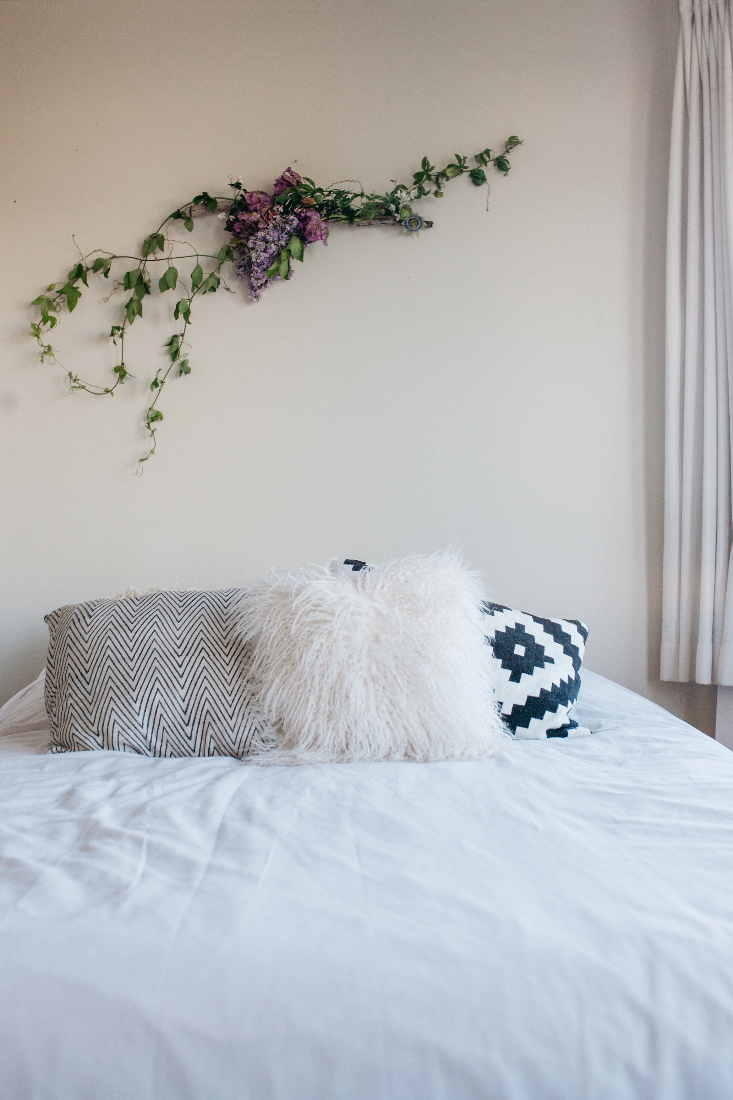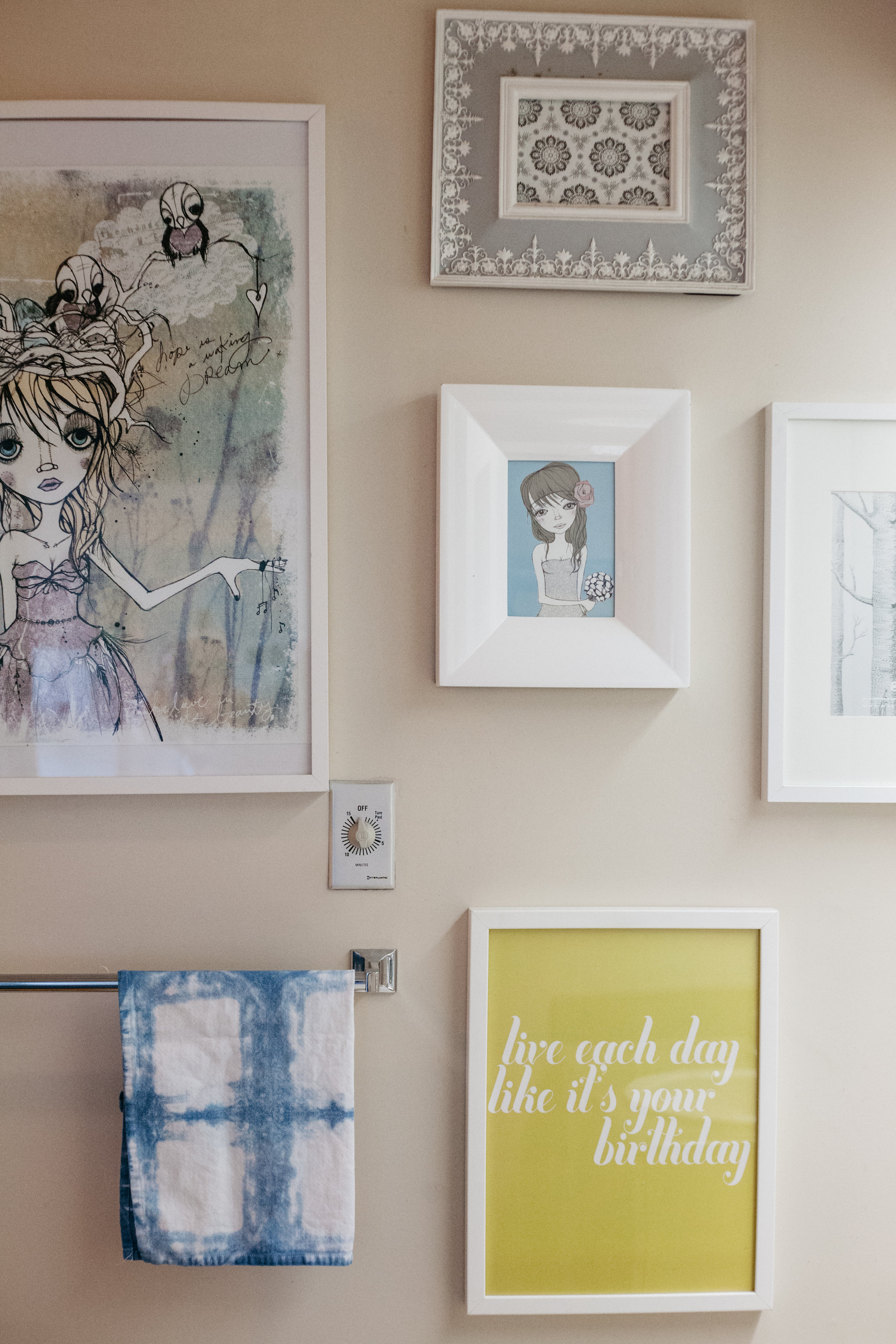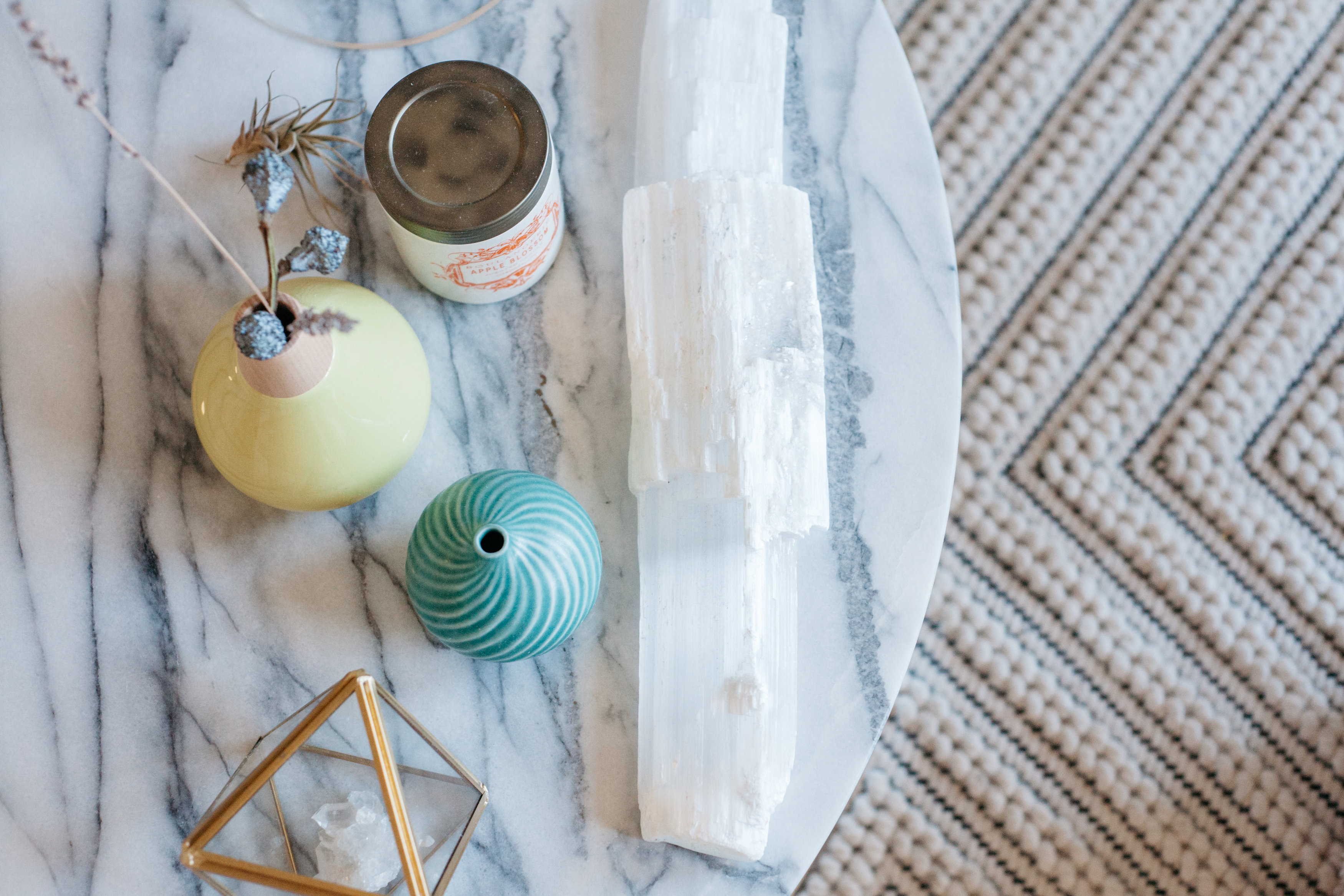 Since our home is small, I really believe in keeping everything bright and light colored. White is such a soothing color to me, so I try to keep that aesthetic in our home. I also love showing off small personal items in our home. Fresh lavender from my mom’s garden, a painting by my mother-in-law, a small white figurine from a trip to Spain. I like to display items that tell a story about our lives.