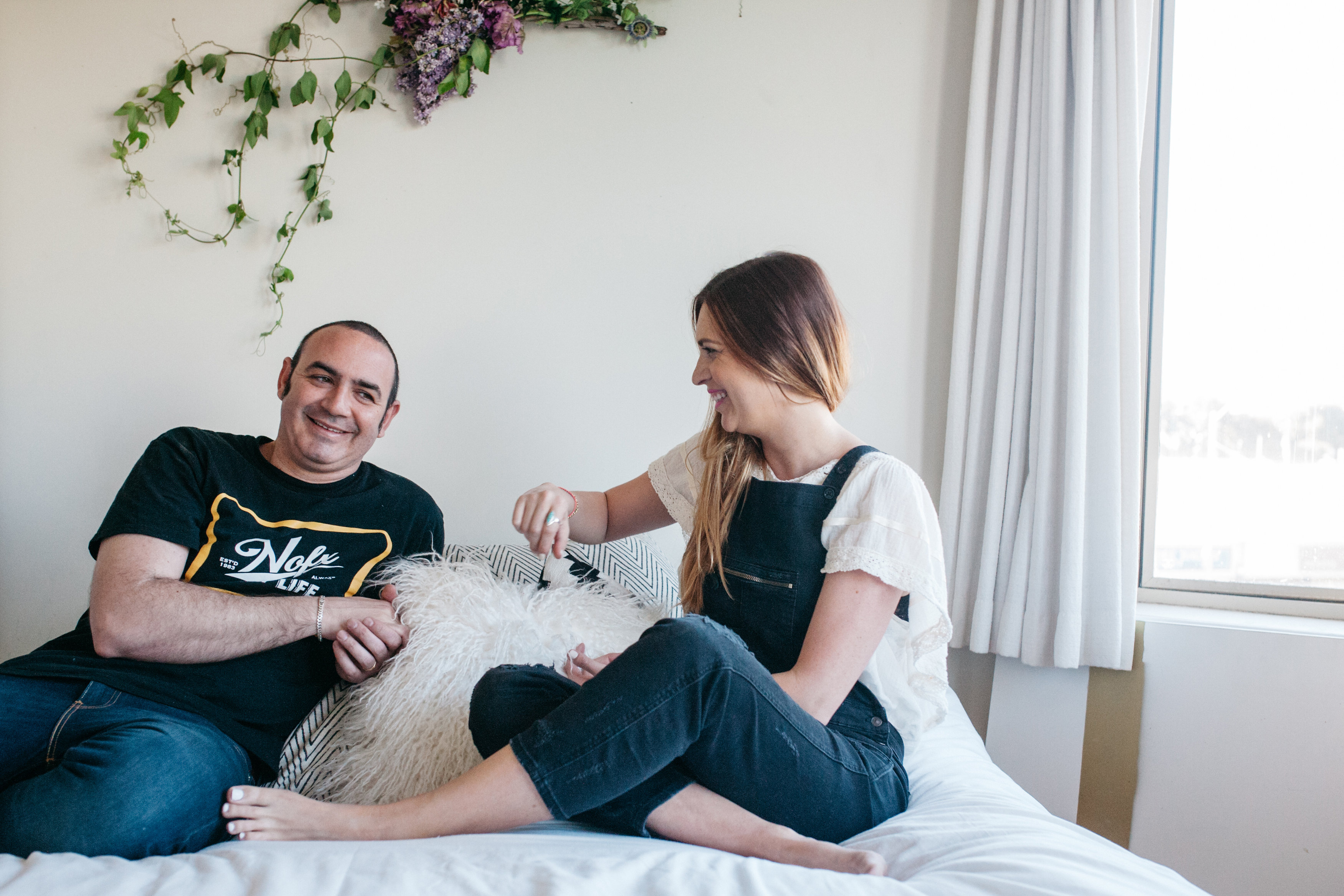 We are so thrilled to share our latest home tour of the sweet as can be Myka Haddad of Modern Sequins! Myka is such a genuine and kind soul, I was lucky enough to meet her when I was looking for an event planner for my own wedding and she was a part of Sitting in a Tree. She made me feel so at ease with the process, I knew she would be the perfect fit for me! Since then she has been working on her fabulous blog Modern Sequins and also creating gorgeous floral and plant arrangements with Brown Paper Design & The Plant Library. We are such big fans of her own personal style that we had to take a peak inside her San Francisco home with husband Georges. This couple is so darn cute, take a look at them and you can see why we fell in love with them!