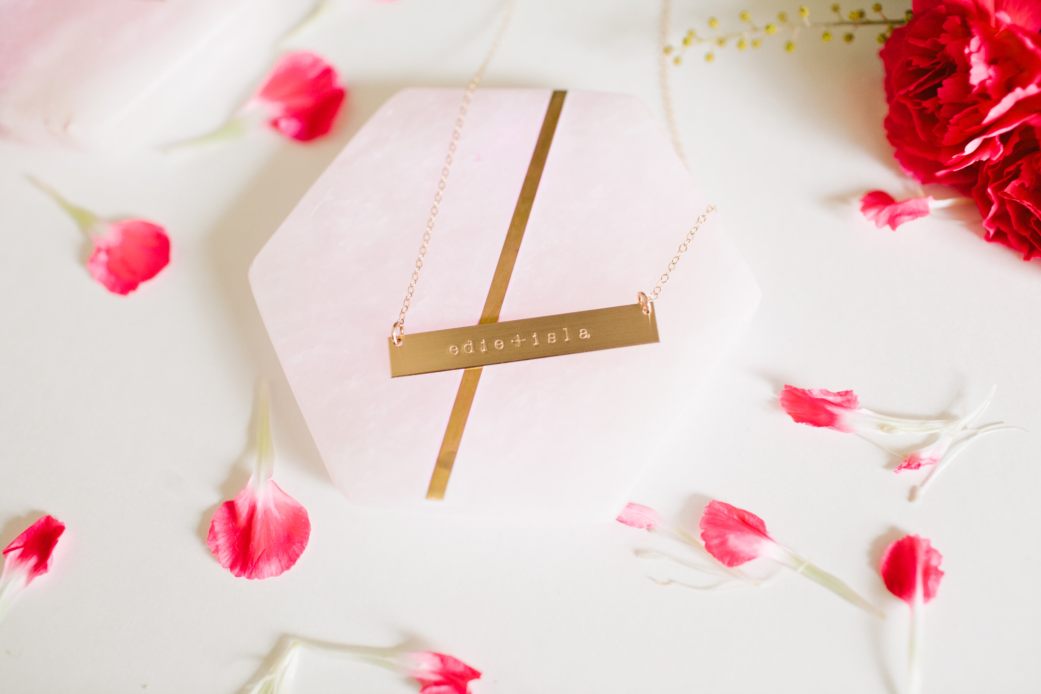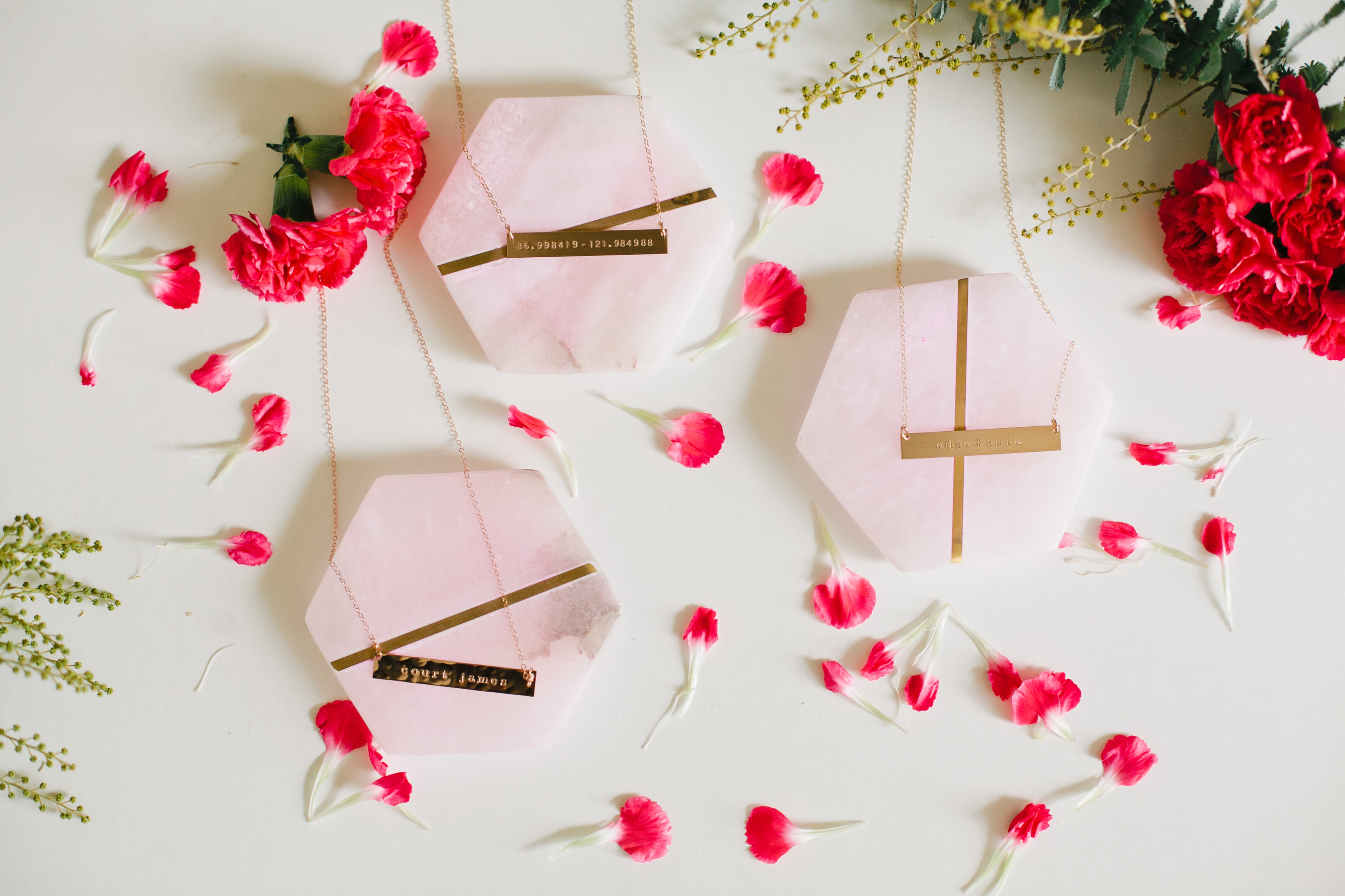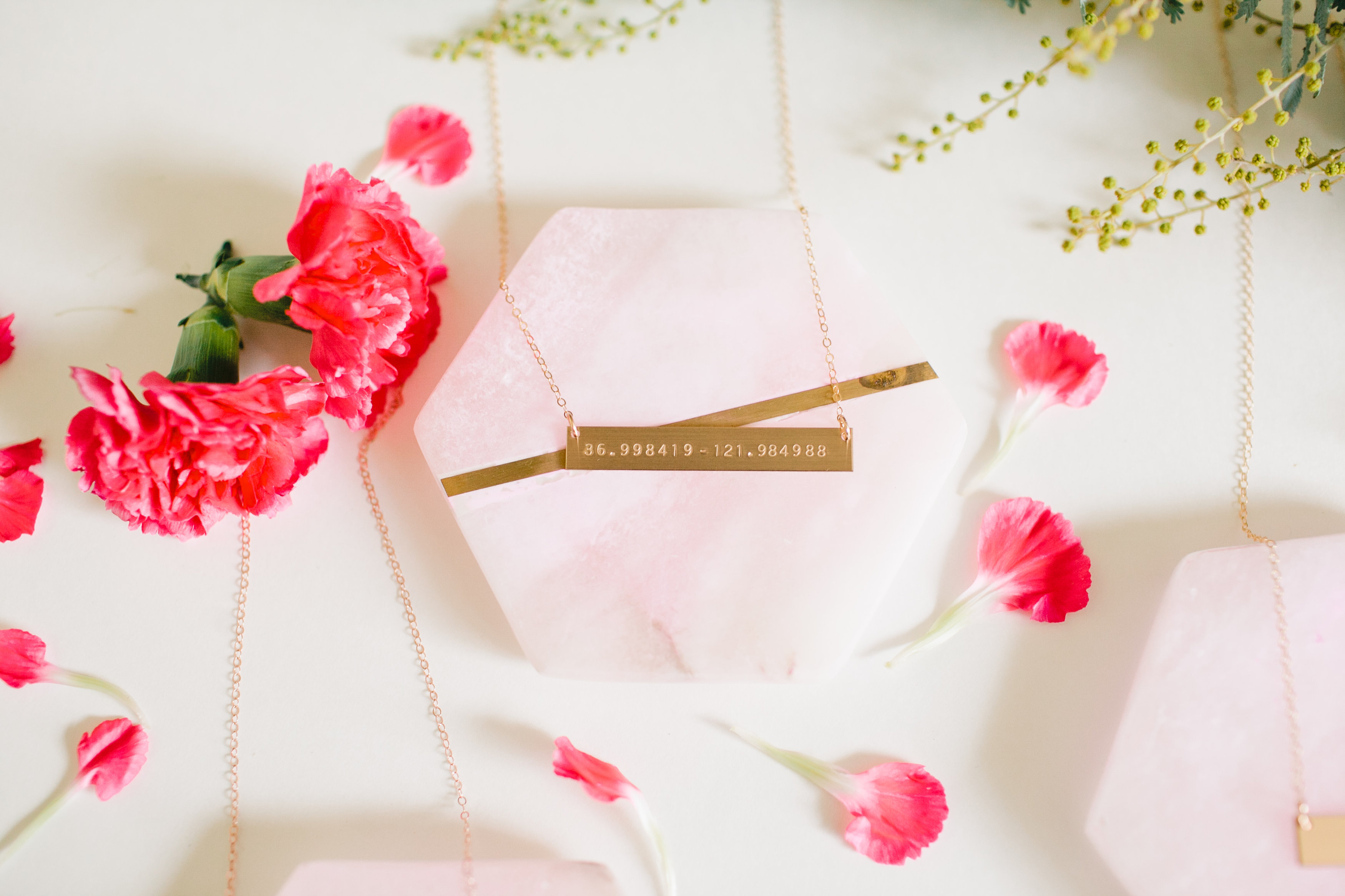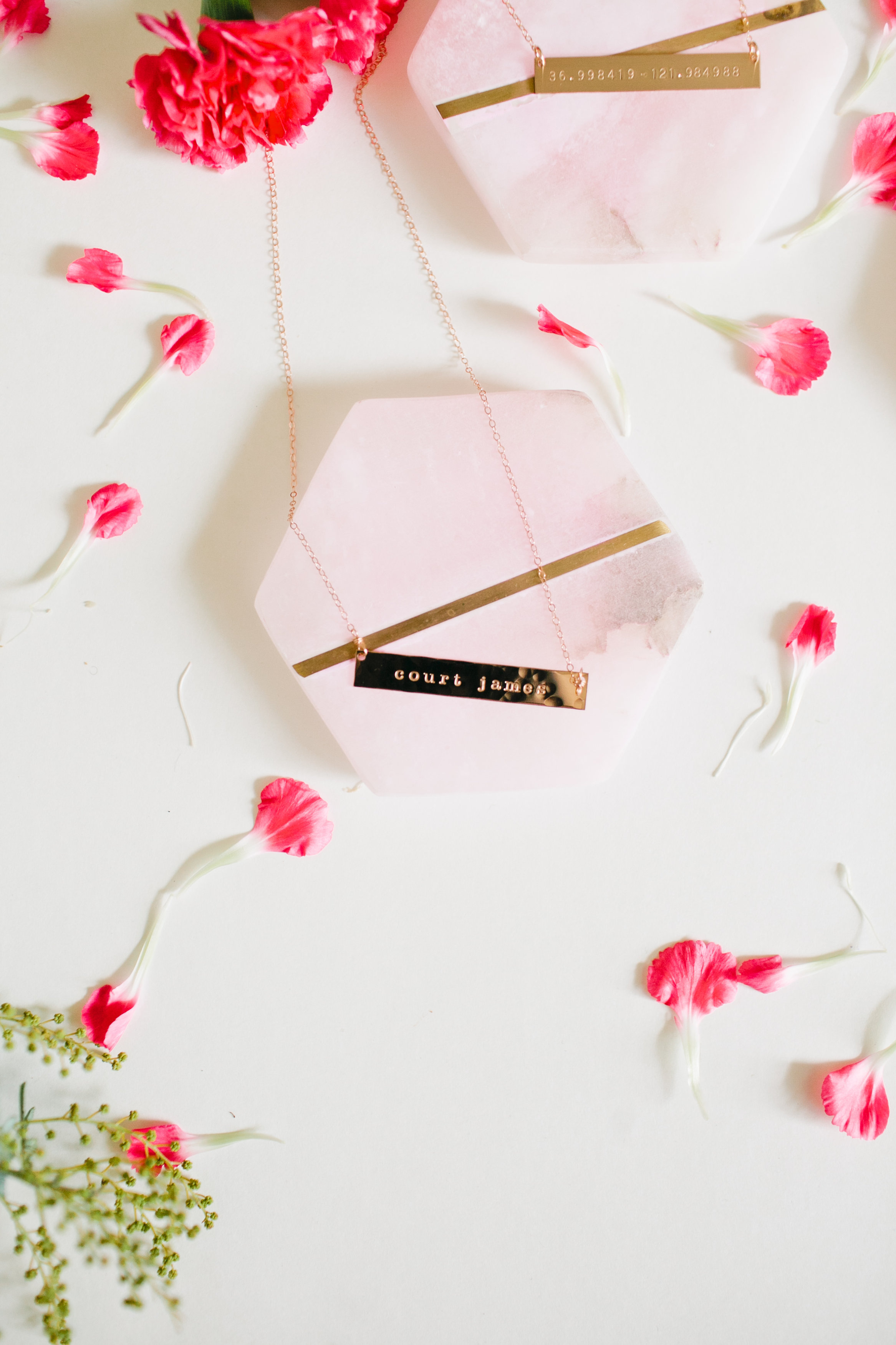 Abby went with something to represent the hubby, it doesn’t have to be about the kiddos all of the time!! Her necklace is in gold and has the coordinates of their wedding location.