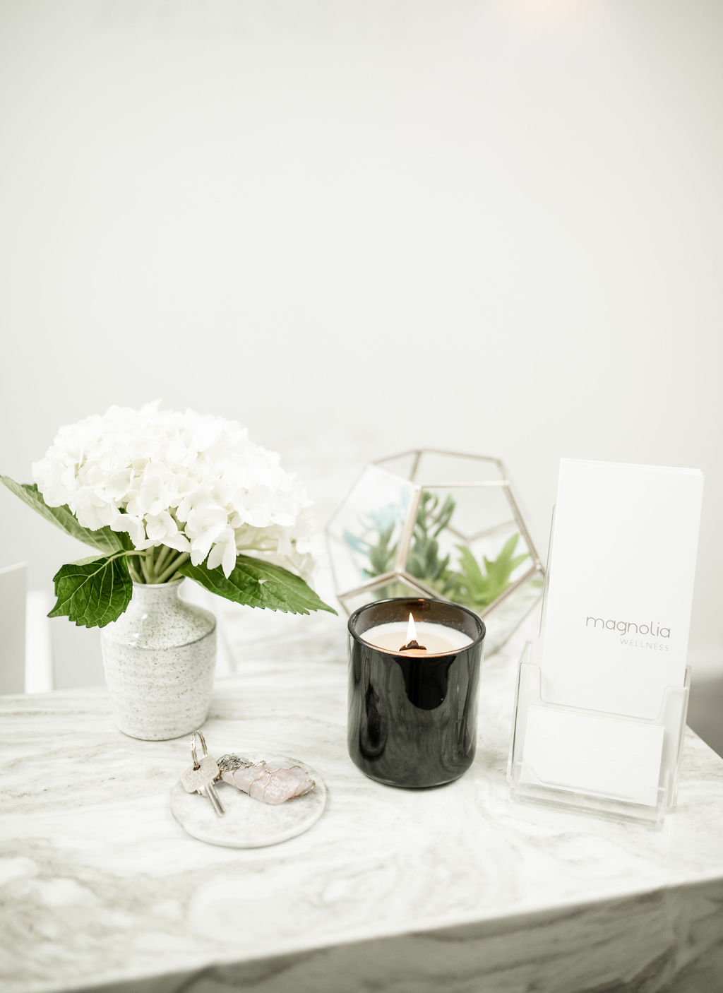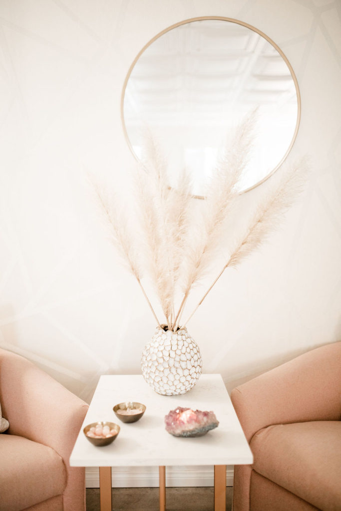 I was really excited to design a space that inspires ease and serenity both within the practitioners and patients by it’s soft, welcoming and simple aesthetic.  Magnolia Wellness is an energetic barometer – it holds a sacred space to ensure that everyone feels calm and tranquil as they walk through the door, and of course the palo santo and crystals always help!