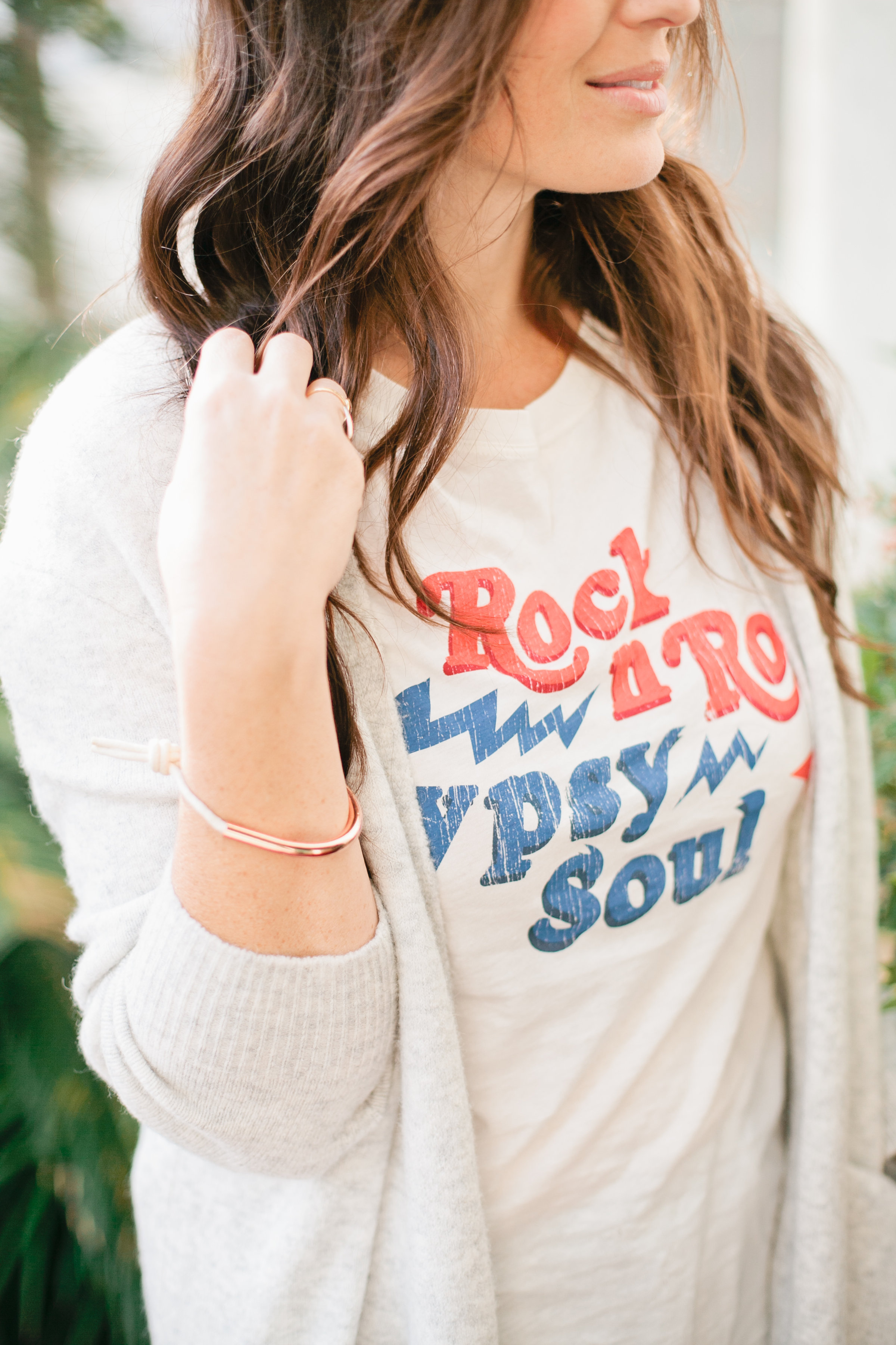 Here is Leah with her Copper New Age Bracelet in Sand