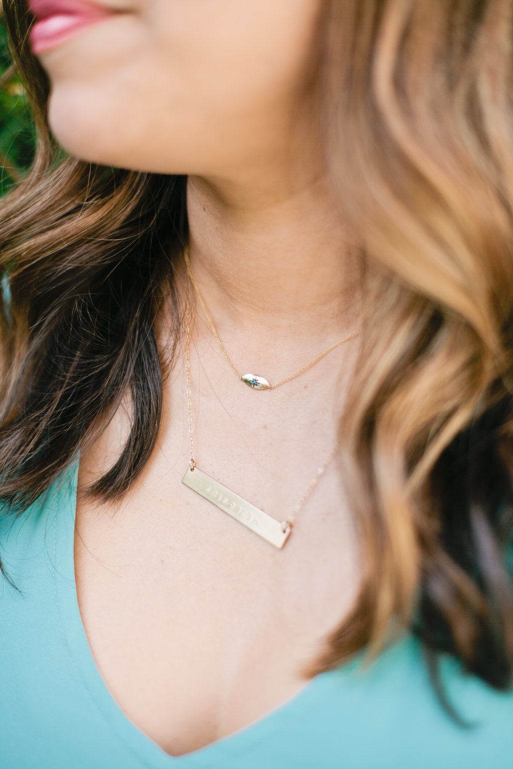 She also chose this pretty gold necklace the Taisie here. Great piece to layer with her everyday bar gold bar necklace adding some character with the stone. You have the awesome marquis shape again and also some evil eye folklore added in this piece.