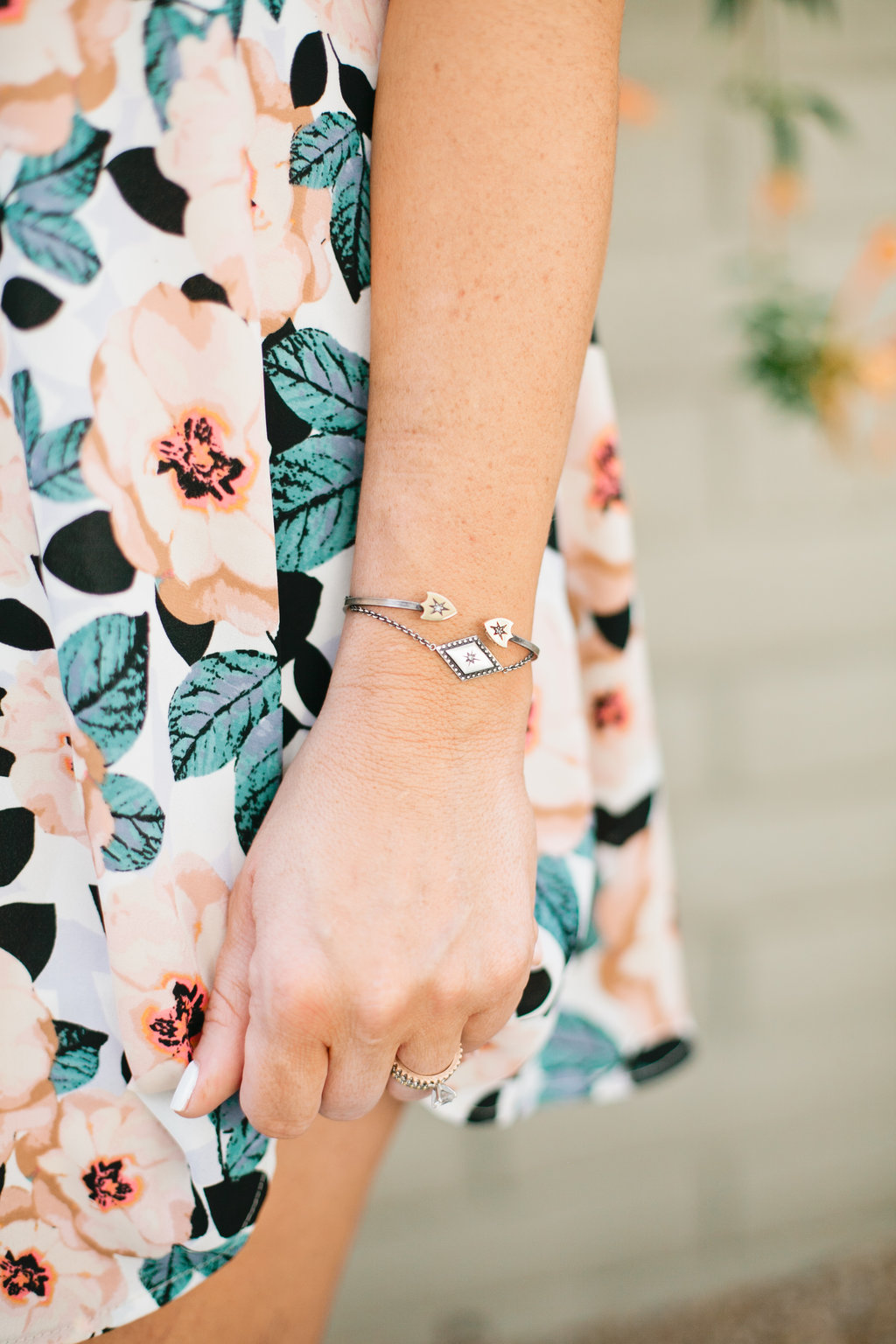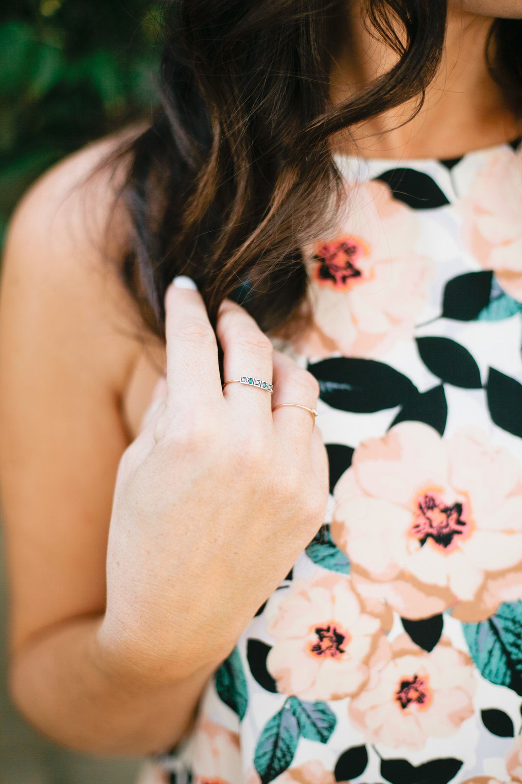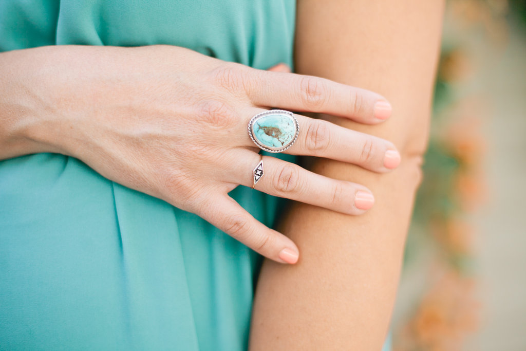 Jacquelyn chose the pretty and dainty Aglaia ring here. Love the mixed metals here with gold and silver and the mixture of stones with the pop of turq!! Just the best.