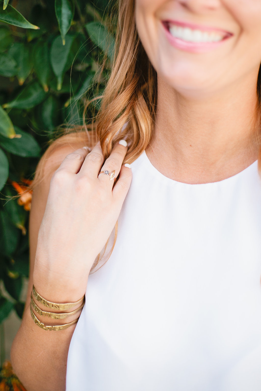 Abby picked the Rana ring you can find here and the Astra ring you can find here. We love the Rana’s marquis shape, and the Astra rings mixed metal star compliments any piece. These two beauties layered is a purely magical combination, and obviously paired with her everyday bracelets.