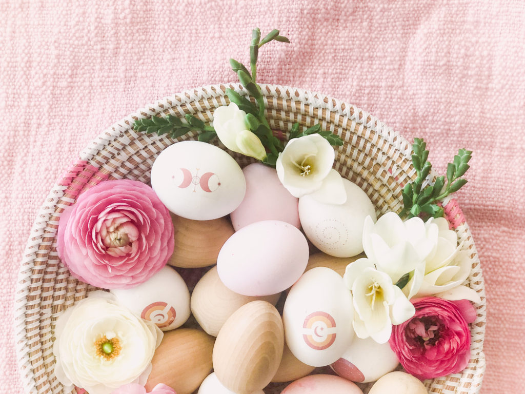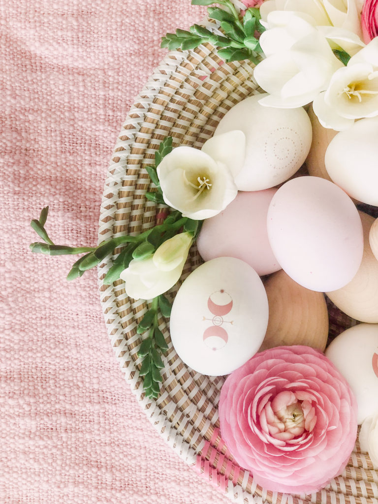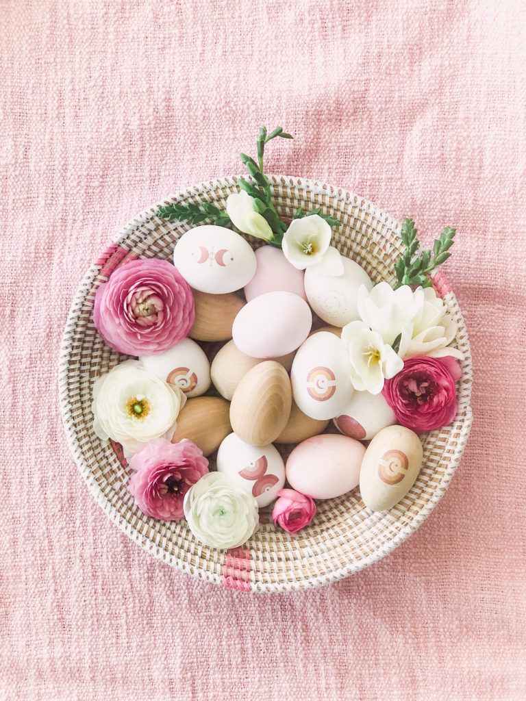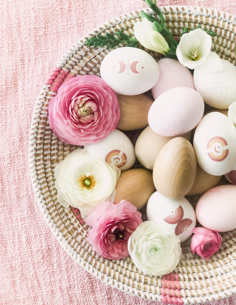 Yay, one of my favorite holiday crafts, decorating Easter eggs! I have been doing this for all you guys for oh gosh, I think we are on year 5. You can scroll down to see the past years. I saw a fun way to put tattoos on eggs a couple of years back. It was actually one of the Easter egg crafts I did, a few years back. See it here! So I wanted to try it again, and make my own tattoos. This time I enlisted the creative and insanely talented Lindsey from Bare Ink Co. to help me with the images. I wanted to do a star and moon vintage vibe with colors of pinks and mustards. These vibe and colors are so up her alley, so I knew she would kill it, and she did!