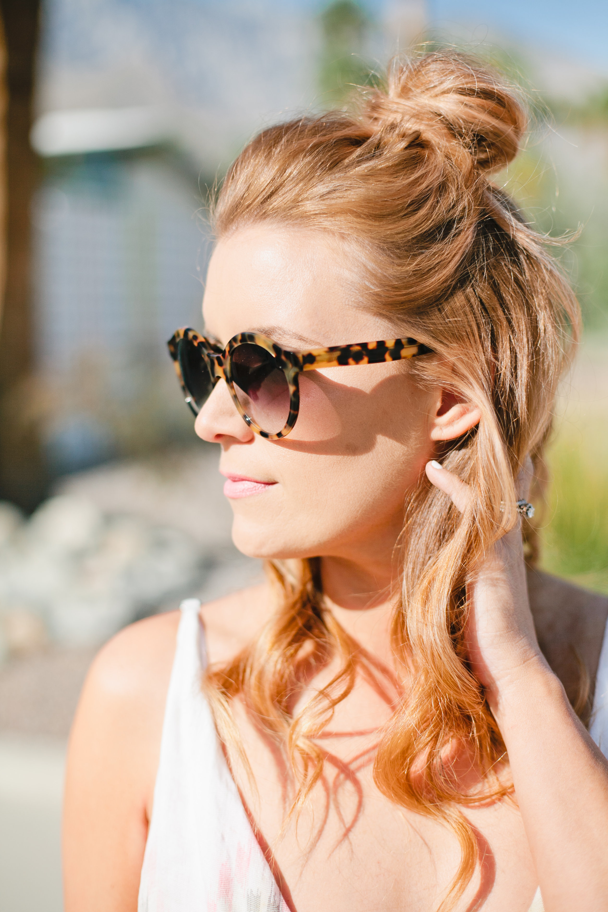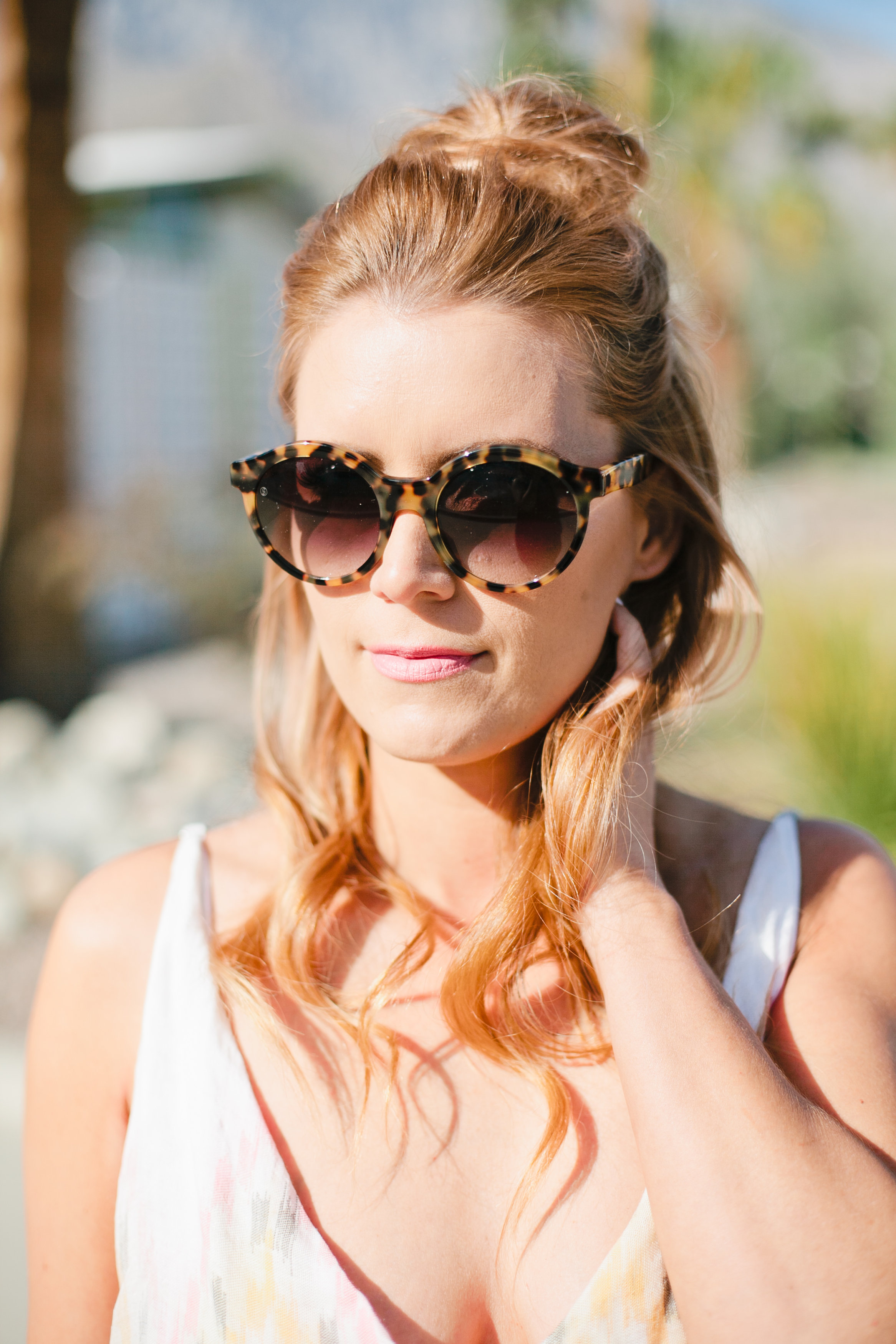 I paired this dress with tan leather wrap up sandals and of course some sunnies. I’m a huge fan of D’Blanc sunglasses, and these tortoise minor panic sunglasses are keeping the vibe cool and natural.