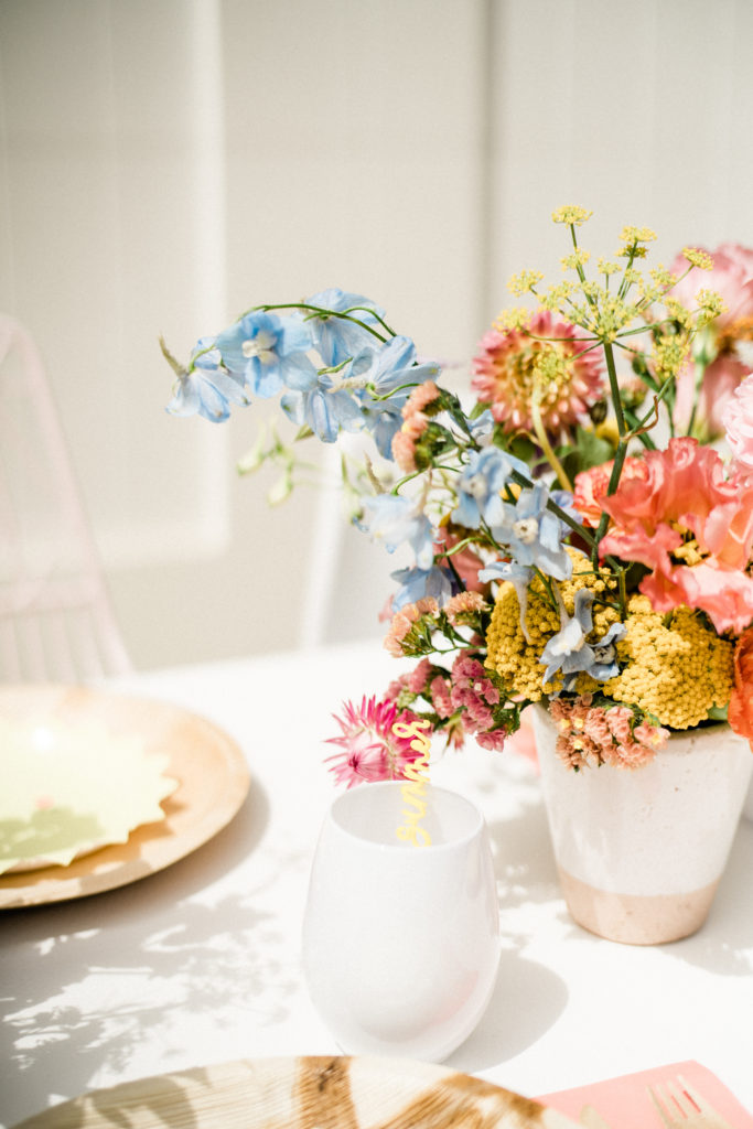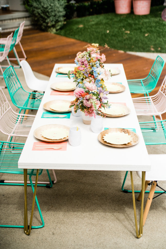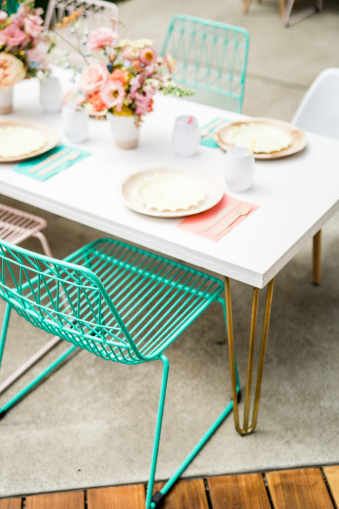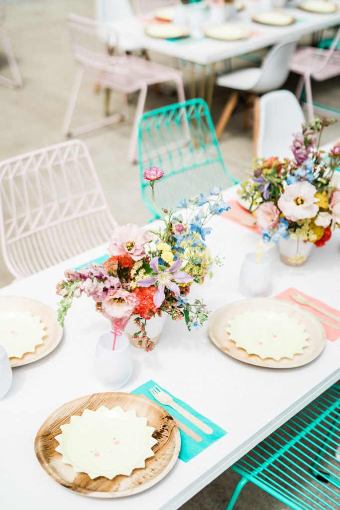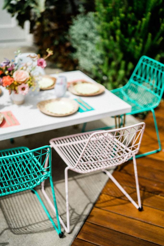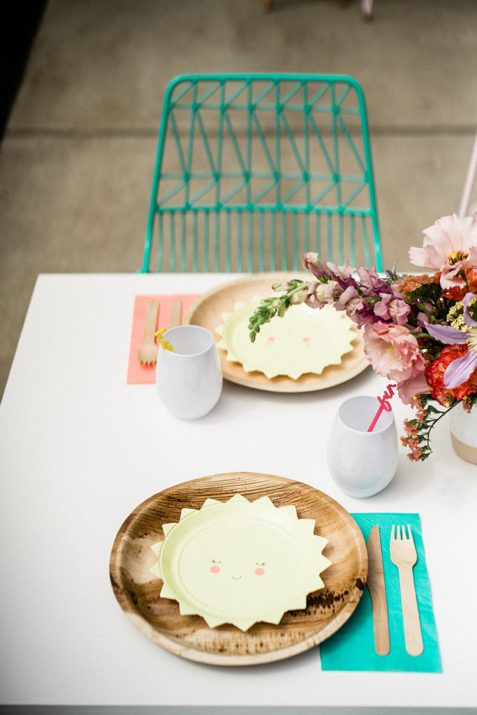 It’s summer, so what better time to use the cutest sun plates by Meri Meri?! I added napkins that in pink and teal to coordinate with the chairs and we added cute stir sticks by Poppy Jack saying things like “Summer” & “Fun”, it’s the little things that make me happy.