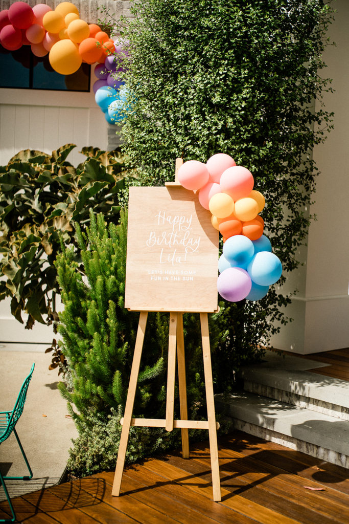 We let all the little party guests know what they were in for on this sign by Poppy Jack Shop – Celebrating Lila’s birthday with some fun in the sun!! The Pop Shop added some colorful balloons to the welcome sign, a last minute request from me, and I think it’s pretty cute!