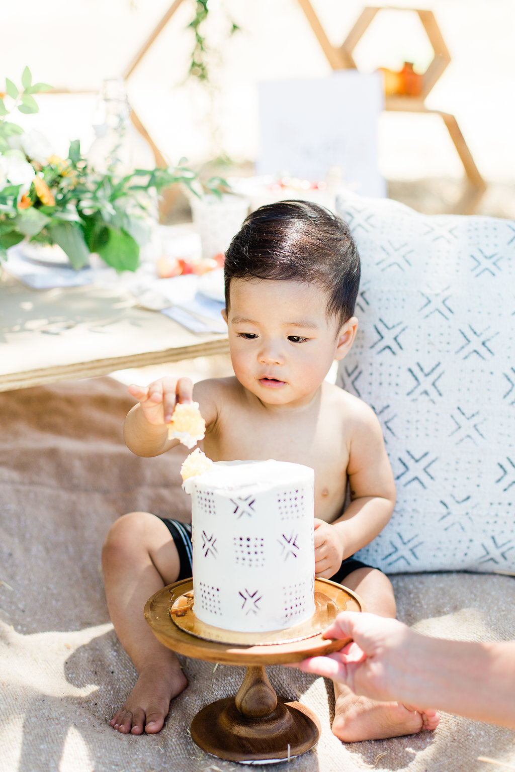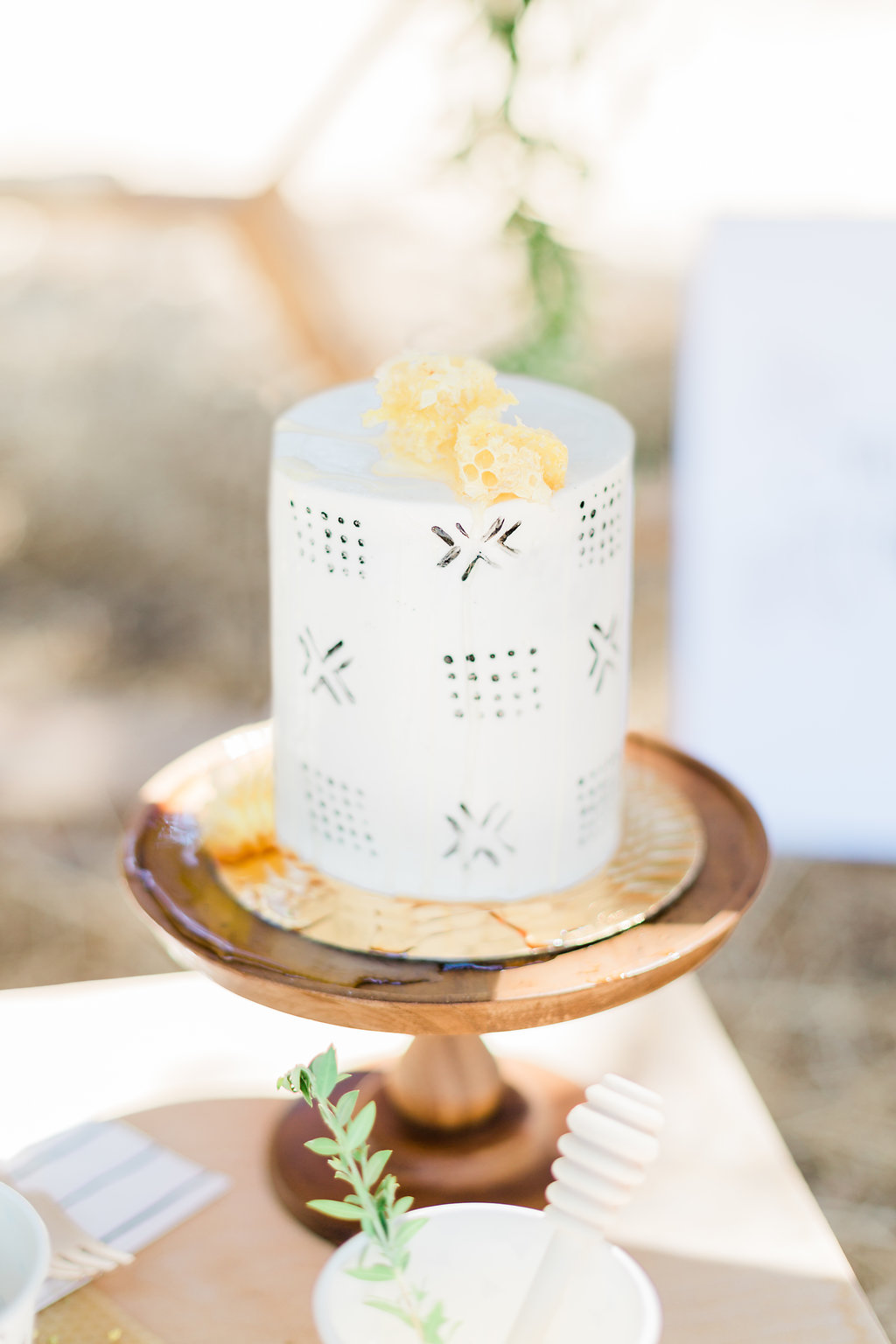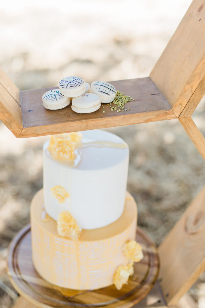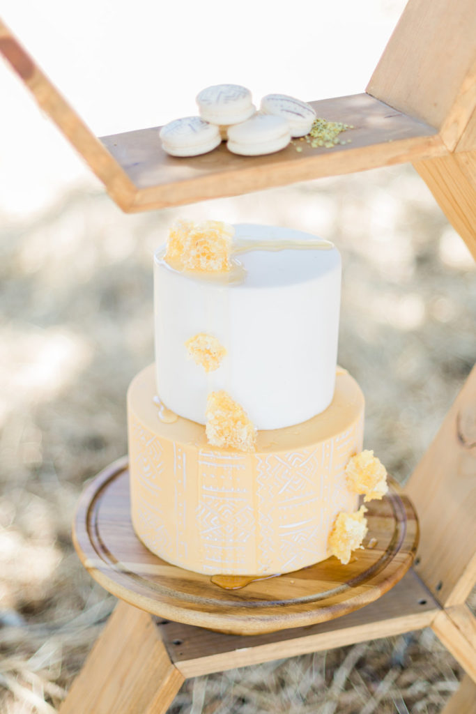 Now, any styled shoot or event we create, you know will have mouth-watering desserts! Bring in Paper Heart Patisserie! This lady I think was just as excited to play with all this honey more than me! With carrying on with the mud cloth details, she created the cutest smash cake and two-tiered mud cloth and honeycomb cake complete with dripping honey.