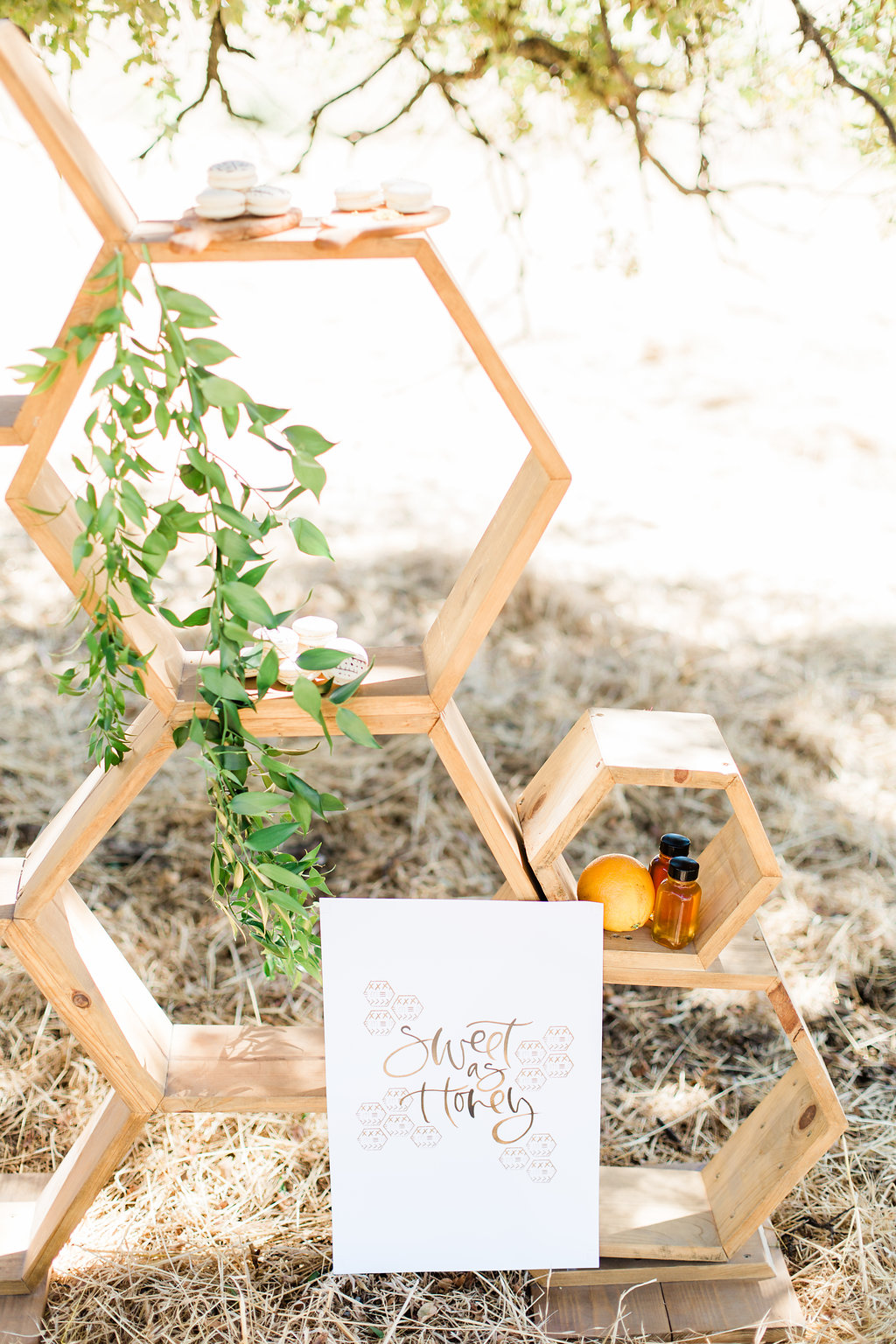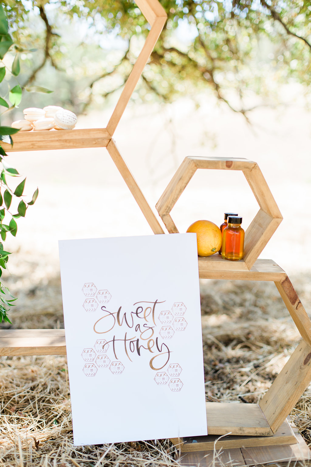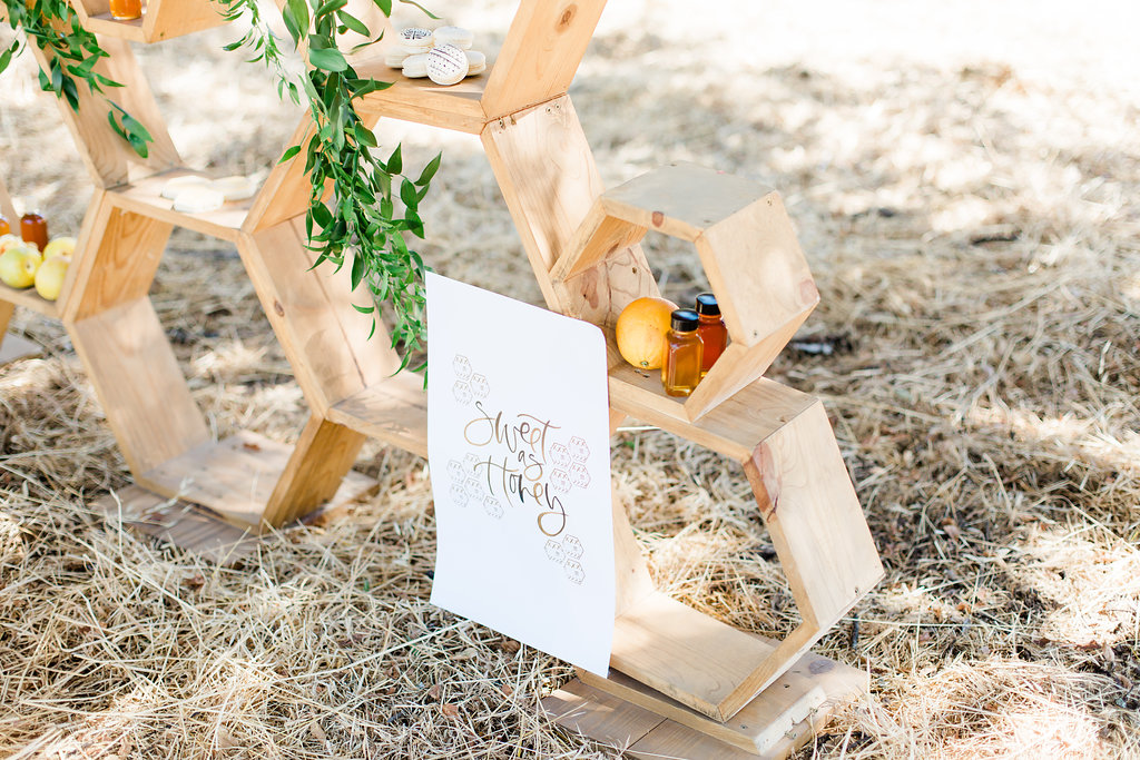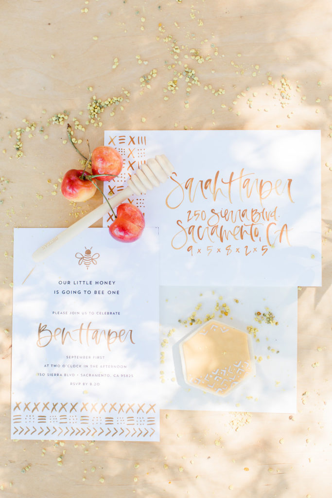She also created this fun invite too! Oh, and did you spy the “sweet as honey” art print on the wooden backdrop?!! Love it!