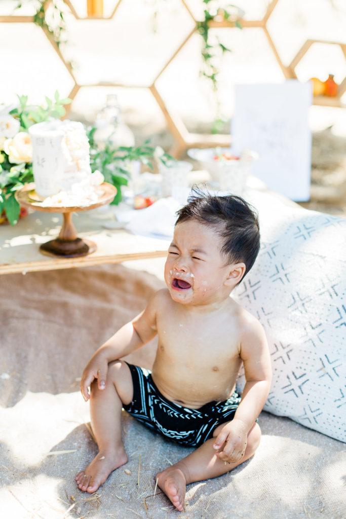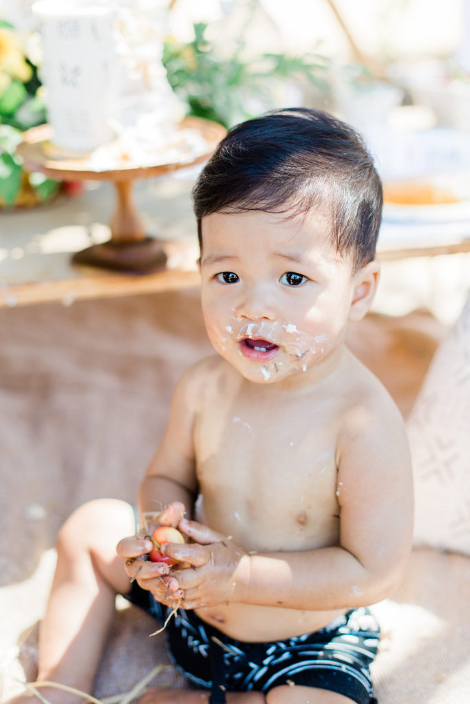 Bring in the birthday boy! This little cutie was ready to dive into this sweet sticky situation!