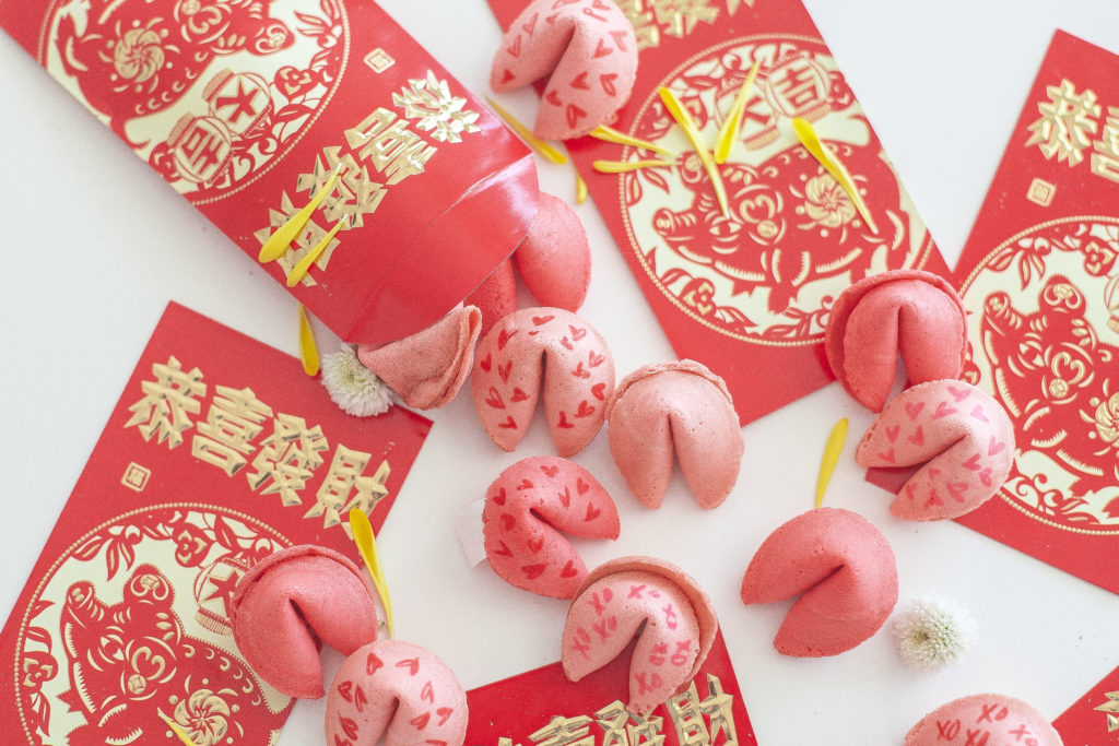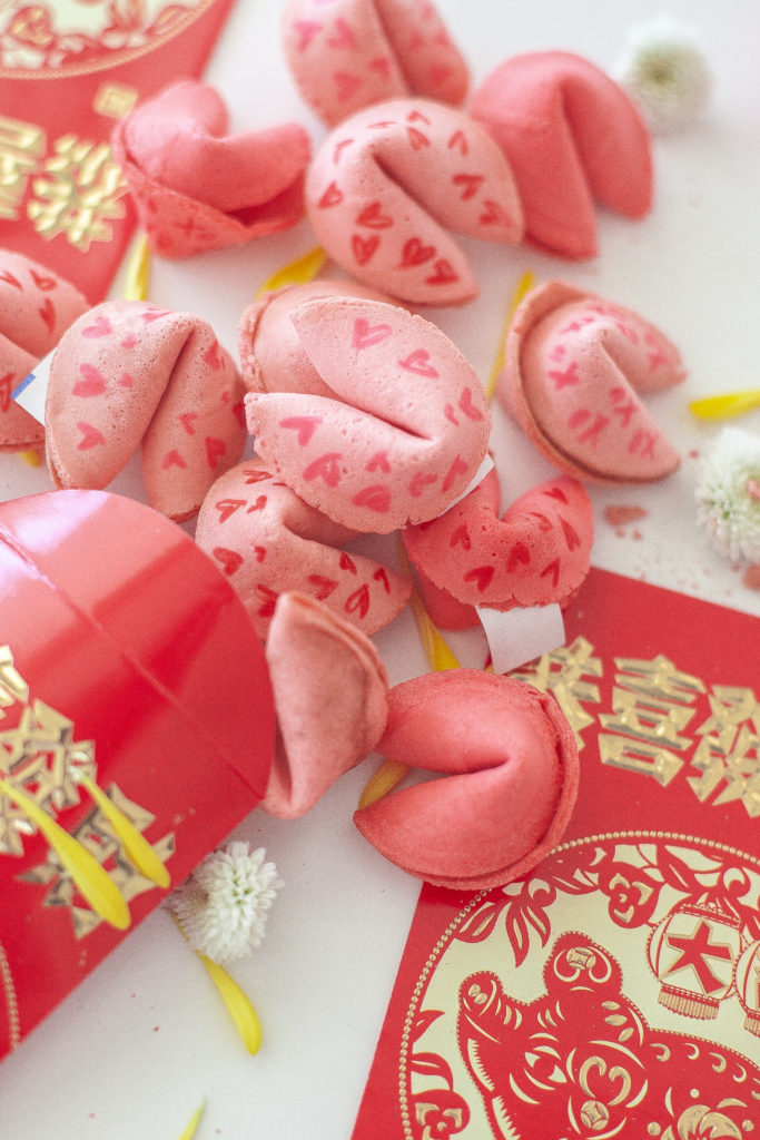 Are you a lover of all things Valentine’s Day like me?! Nothing sweeter than love notes, sweet treats, handmade cards from your little ones, and hopefully a pretty bunch of florals from your main squeeze. Since we are all about the Lunar New Year vibe this February, I thought some cute fortune cookies would be a fun treat for this Valentine’s Day. These fortune cookies are a festive sweet DIY that you can do in under 5 minutes!