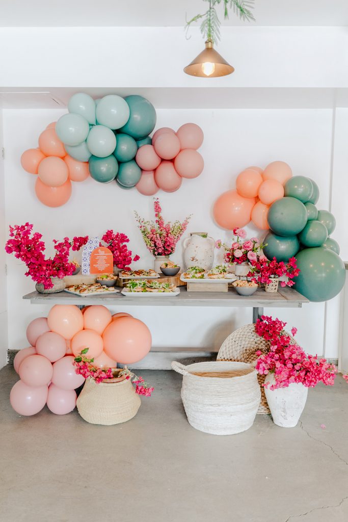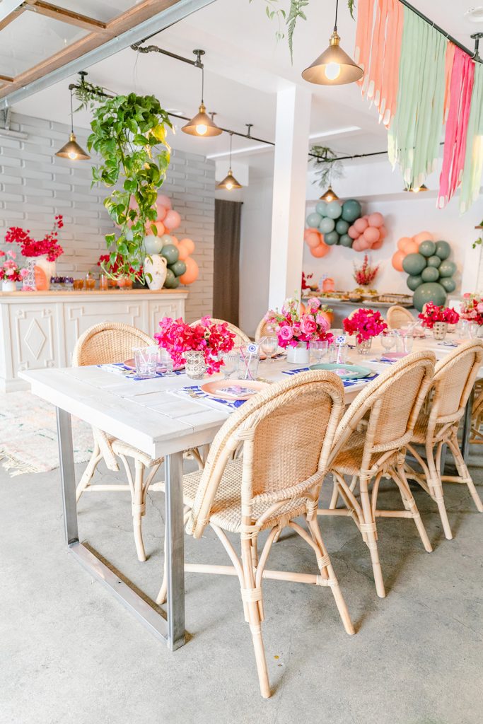 I was so lucky to have the help of fellow mamas and guests to create this magical night. Some of the mamas are fur mamas, but mamas nonetheless!!! Michelle Rogers and Sabrina of Golden Arrow Events & Design did the fun fringe installation and balloons you see, Marnie of Sweet Salvage Rentals brought all of the rentals, and Alex of Third & Park did all the pretty florals. These babes are pretty amazing and I couldn’t do life in the event industry without their support!! As working mamas running our own business, we need all the support we can get!